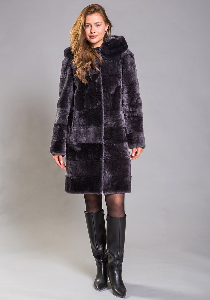 Не упустите свой шанс купить по самой выгодной цене популярную в этом сезоне модель мутоновой шубки-полупальто цвета графит, арт. 1831 в компании «Фабрика Меха».