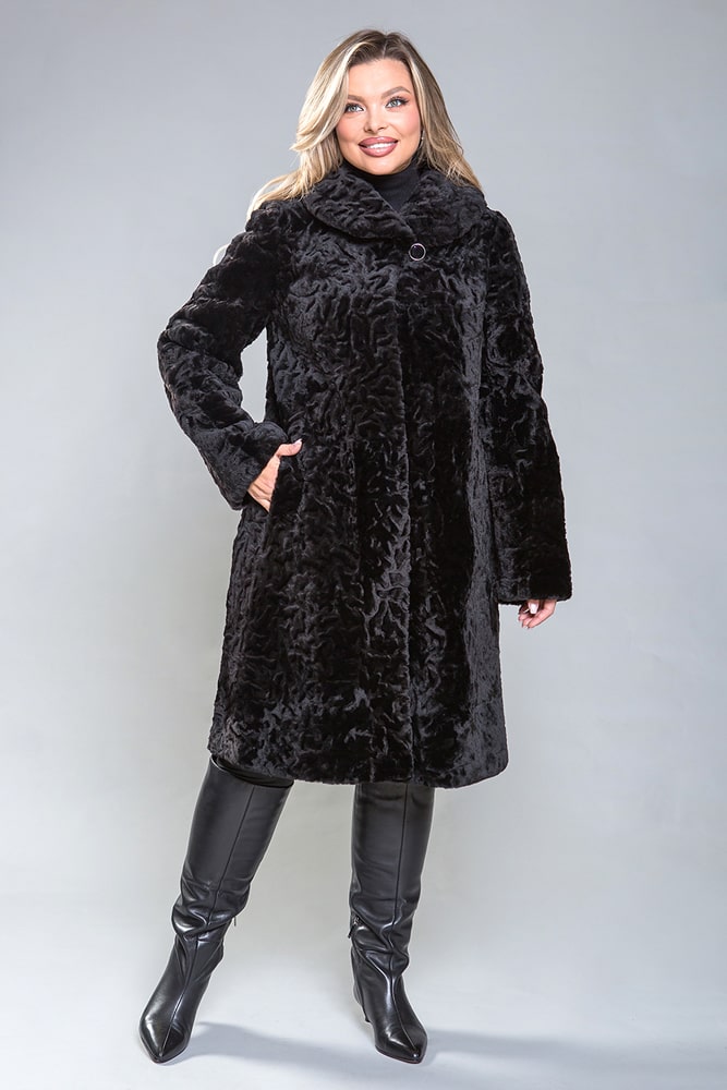 Полупальто из мутона черного цвета, арт.1913 — это универсальная и практичная верхняя одежда, сочетающая в себе тепло, уют и стиль. Мутоном называют «облагороженную» овчину особой обработки, окрашенную в разные оттенки. Этот материал отличается легкостью, прочностью и высокими теплоизоляционными свойствами, что делает его идеальным выбором для холодных сезонов.