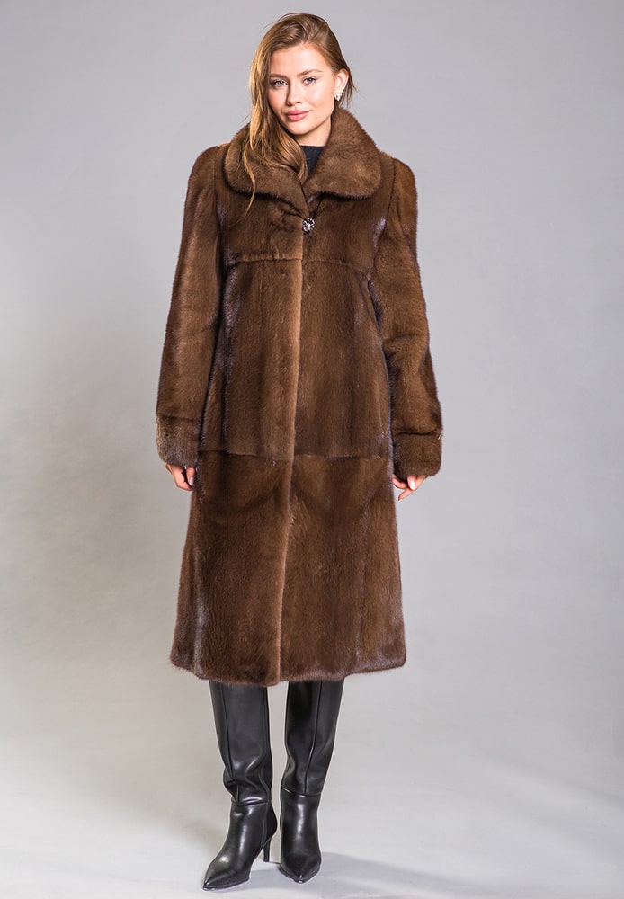 - Изысканный стиль. Цвет шоколад придает полупальто из норки особую элегантность. Этот нейтральный и глубокий оттенок легко сочетается с различными нарядами, от повседневных до вечерних, добавляя образу изысканности.