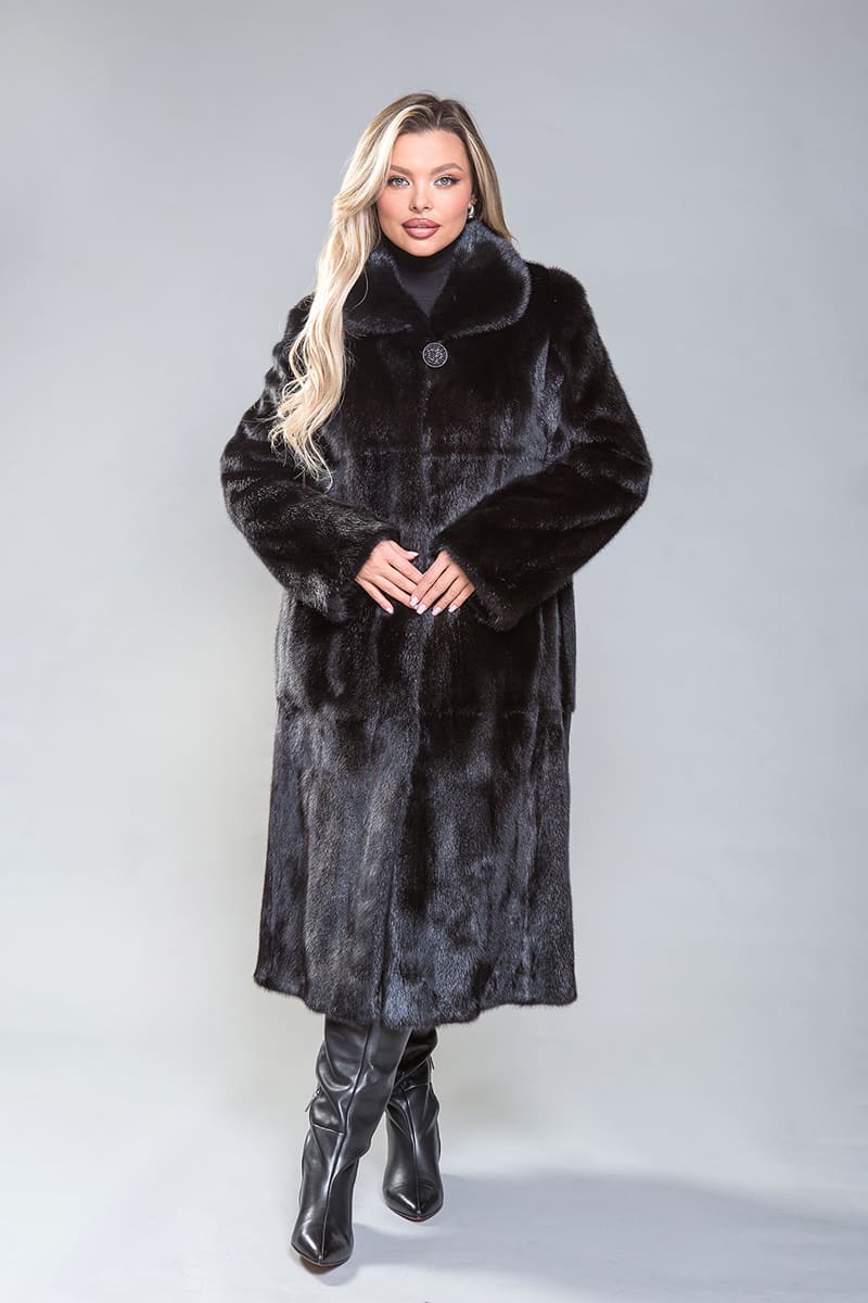 Черная норковая шуба — это символ элегантности, роскоши и статуса. Норка, как материал, известна своей мягкостью, легкостью и блеском, что делает ее идеальным выбором для создания изысканных и теплых изделий. Перед началом зимнего сезона компания «Фабрика Меха» проводит очередную акцию со снижением цены на черную норковую шубу, арт.3100, прямого фасона, отшитую по технологии пластины с добавлением роспуска с классическим воротником.