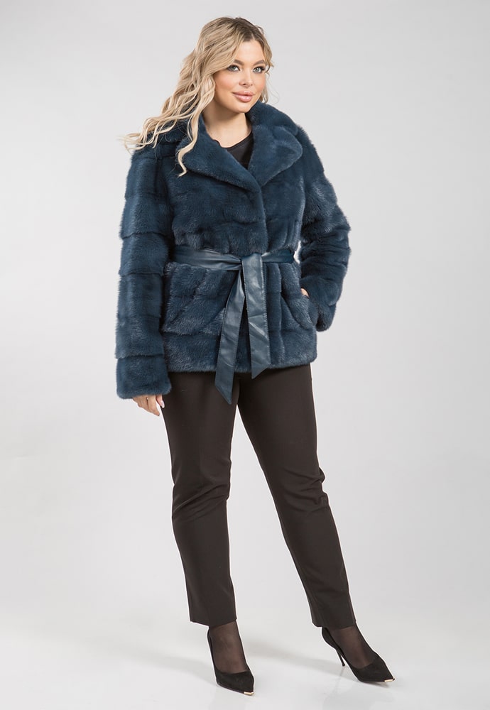 Эта норковая куртка внешне напоминает меховой жакет. Она отлично смотрится с брюками разных фасонов, включая офисную классику. Ее отличает: