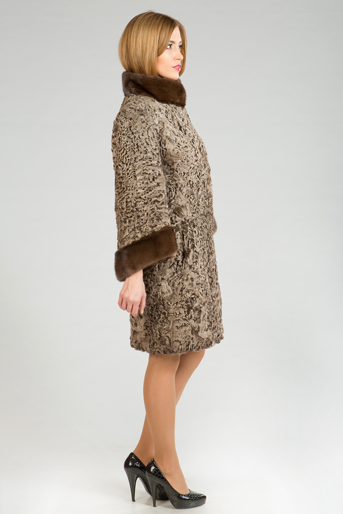 Экономные хозяйки знают, что дорогие статусные меховые изделия лучше покупать по акциям, которые проводят абсолютно все уважающие себя магазины меха. Это, во-первых, позволяет грамотно распределять бюджет, во-вторых, обзавестись стильной качественной вещью за сравнительно небольшие деньги, в-третьих, регулярно пополнять собственный гардероб, не ущемляя прочих членов семьи. Вас сделает настоящей королевой будущей зимой элегантная каракулевая шубка по колено, арт. 4214, с вставками из натурального меха норки – им оторочен воротник-стойка и украшены рукава. Эта модель: