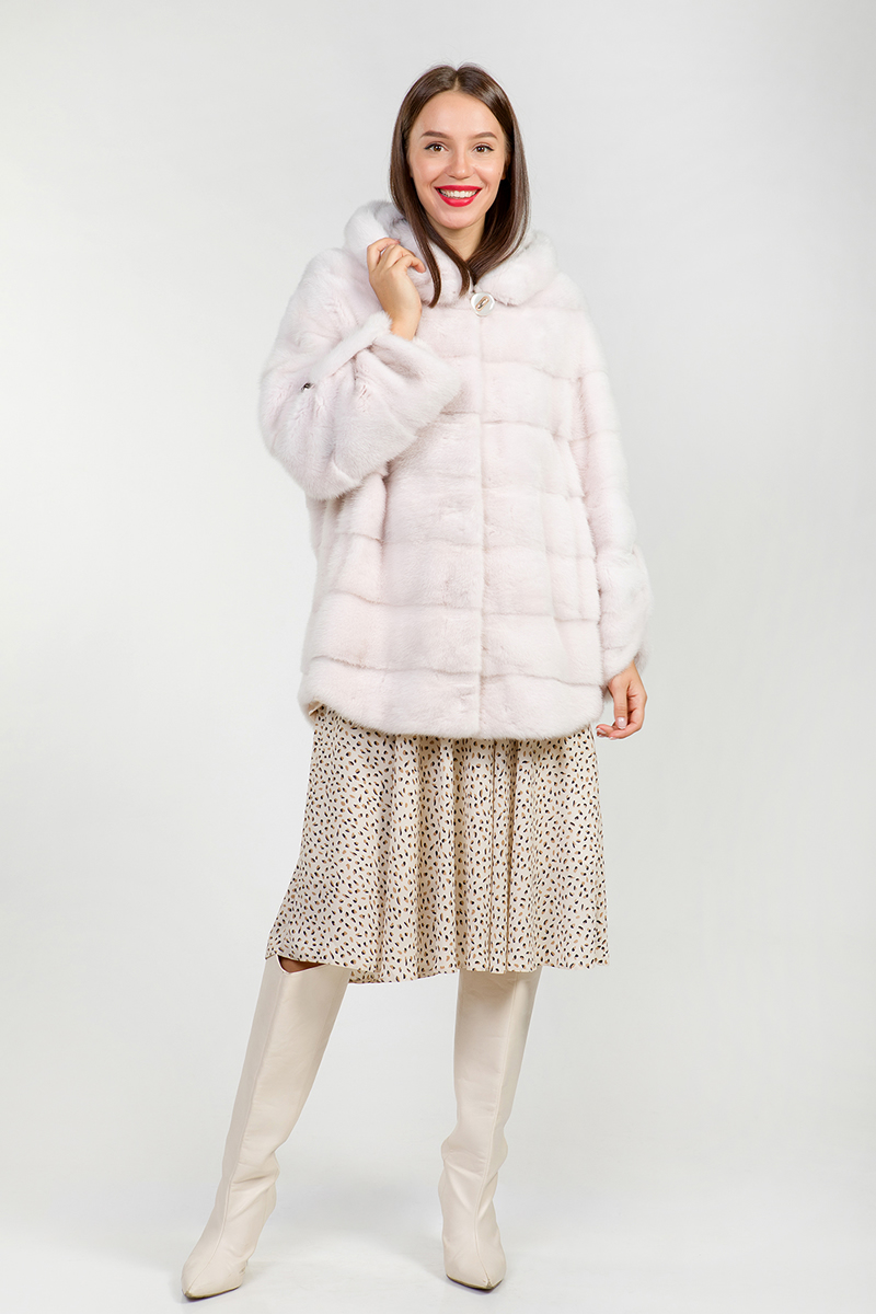 Очередная акция со скидкой заинтересует почитательниц оригинальных меховых моделей в романтичном, гламурном стиле. Компания предлагает по сниженной цене куртку с капюшоном арт.5075 размер 52-54 в нежном оттенке дымчатая роза. Лаконичный фасон удачно дополняют меховые утяжки на рукавах, фигурная линия низа. Светлый тон добавляет образу женственности, освежает, омолаживает его. Поперечная выкладка пластин качественно демонстрирует достоинства норки.