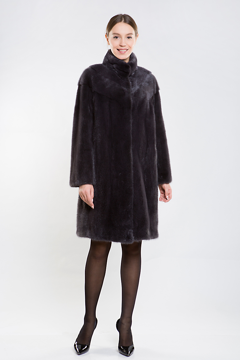 Норковое полупальто прямого силуэта выполнено в трендовом цвете муссон, который к лицу и блондинкам, и брюнеткам, и рыжеволосым красавицам.