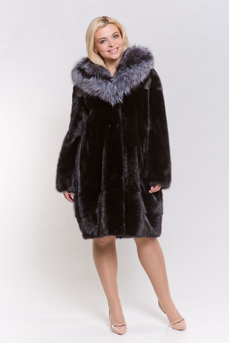 В особых украшениях норка не нуждается, красота, величие этого меха позволяют ему любое изделие превратить в элемент респектабельного лука. Но дизайнеры используют различные комбинирование материалов для придания моделям особой привлекательности, выразительности. Капюшон из лисьего меха, дополняющий норковое полупальто:
