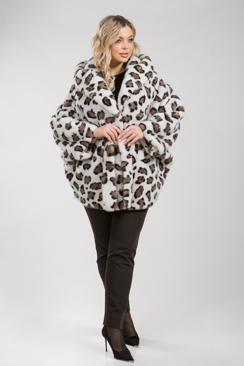 На женщину в норковой куртке пончо с расцветкой, стилизованной под шерсть снежного барса, обязательно будут обращать внимание. Вы будете ловить на себе взгляды прохожих – завистливые женские и восхищенные мужские. Количество дней акции ограничено. В наличии есть размеры с 46 по 52.