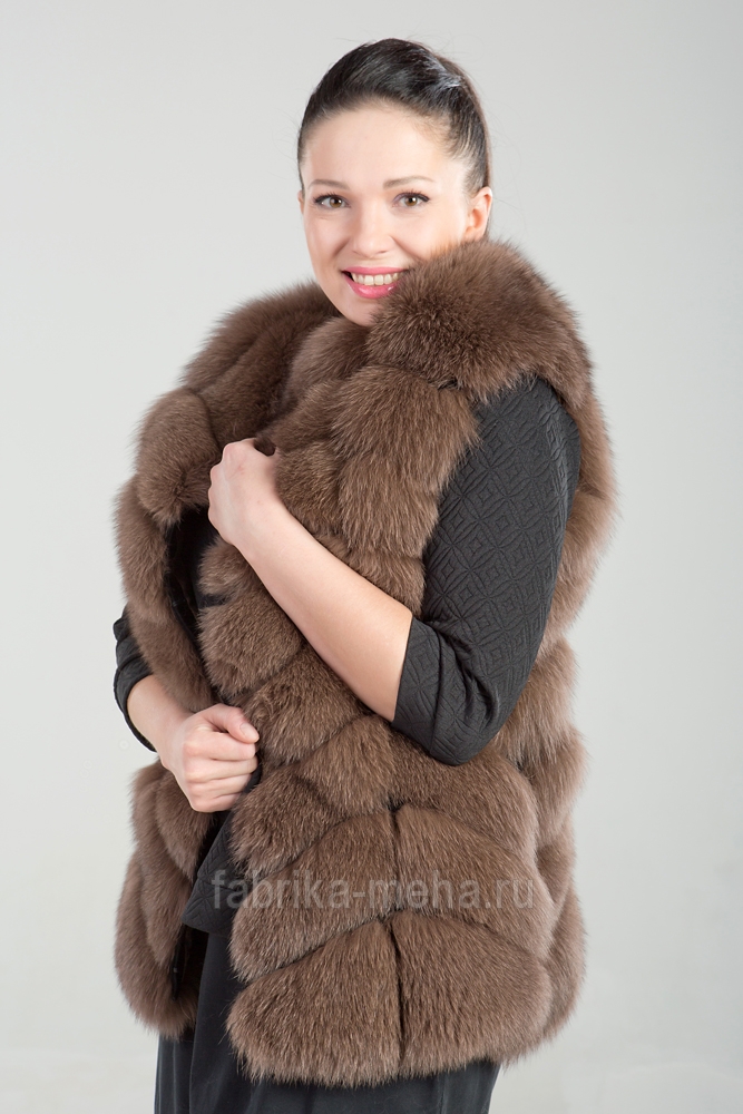 Песец – северная лиса – также любим модницами. Этот мех вполне доступен по цене и очень теплый и пушистый. В такой жилетке не будет холодно осенью, особенно если вы решили вдруг выбраться с друзьями за город на пикник или просто совершить длительную прогулку по городским улицам. Мех песца имеет богатую палитру оттенков серовато-белого и голубого, так что если вы предпочитаете менее яркие варианты, то вам наверняка понравится такая жилетка.