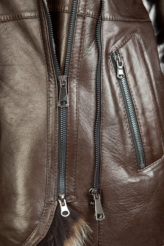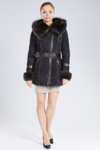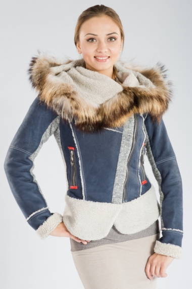 Оригинальная укороченная женская дубленка. Приталенный силуэт. Капюшон комбинирован мехом лисы, по низу так же отделка из меха. На изделии две рабочих молнии. Внутри отделка из эко меха. Нет в наличии.