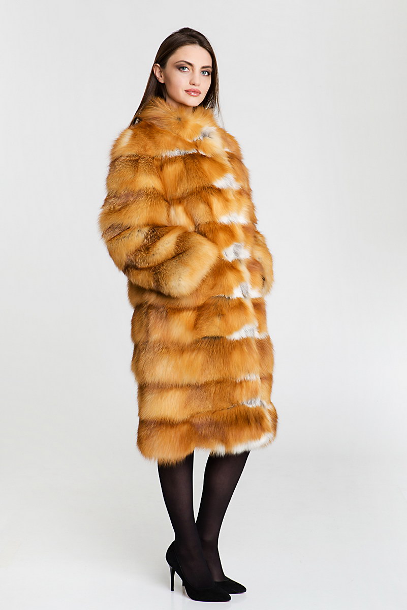 Полупальто из меха лисы. Крой изделия поперечная выкладка пластин. Воротник стойка. Такая модная шубка пользуется популярностью, так как яркие насыщенные оттенки выгодно дополняют любой образ и позволяют подчеркнуть индивидуальный и хороший вкус обладательницы изделия.