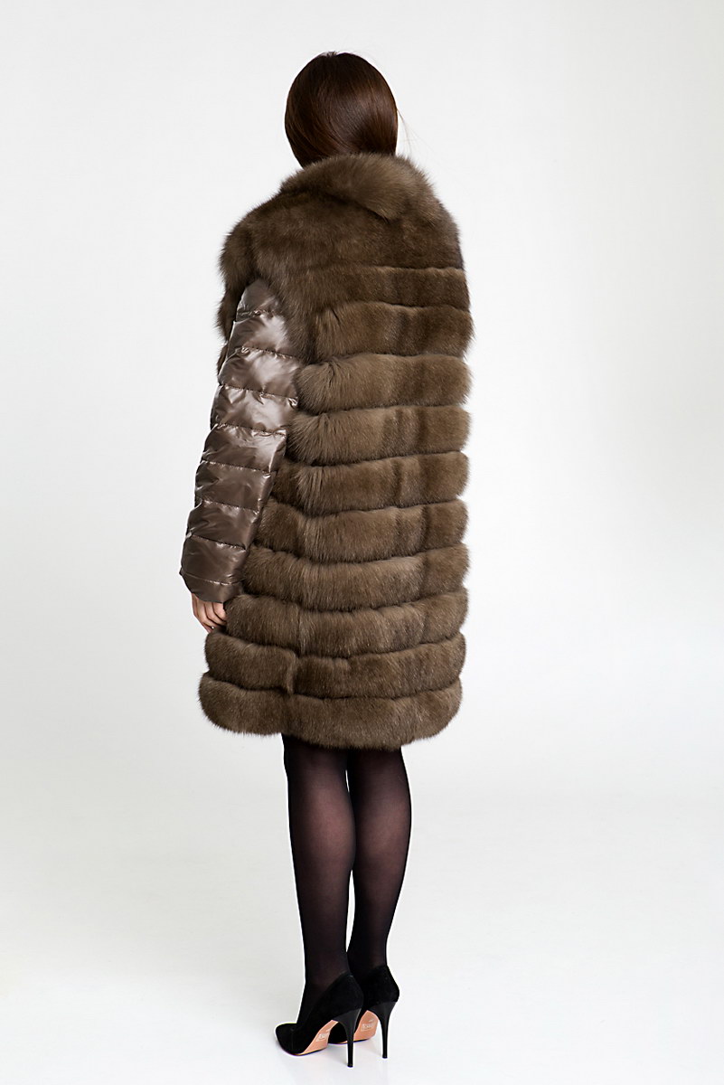 Полупальто из меха норвежского песца. Крой изделия поперечная выкладка пластин. Текстильные рукава модели отстегиваются и полупальто трансформируется в модный жилет. Песцовая шубка, которая сделана под соболя имеет безупречный внешний вид. И всегда смотрится стильно и красиво, несмотря на низкую цену!!!