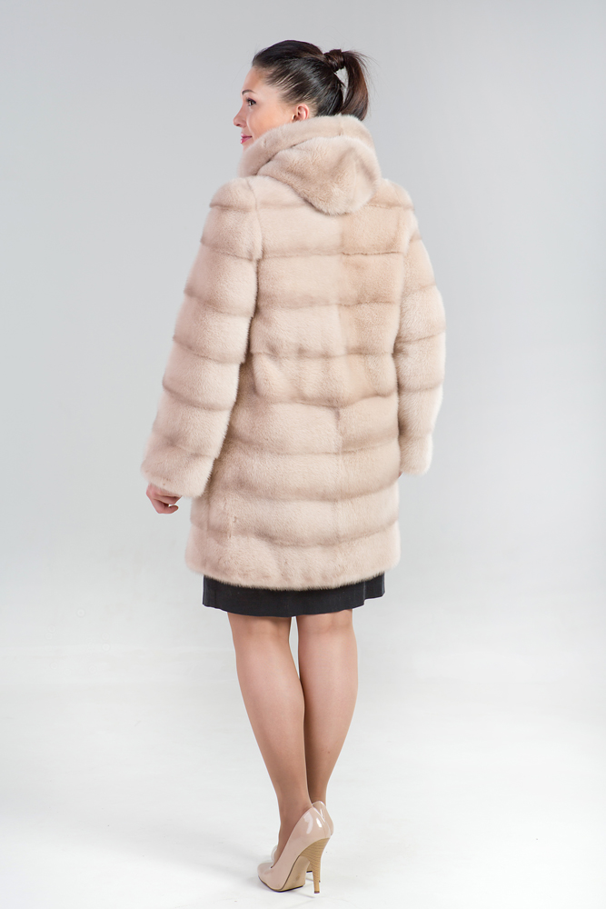 Курточка из меха норки с капюшоном. Прямая классическая модель. Крой поперечная выкладка пластин. Рукава модели трансформируются в более укороченные. Внутри на талии и на рукавах шубки имеются регулирующие утяжки. Нет в наличии.