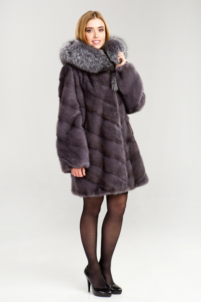 Куртка из меха норки. Капюшон изделия дополнен мехом шикарной лисы. Крой изделия диагональная выкладка пластин. Модель оснащена регулирующими утяжками по низу изделия и в зоне талии. Длина модели 88 см. Курточка легкая и уютная, в ней удобно ездить за рулем, она не стесняет движений и хорошо пропускает воздух!