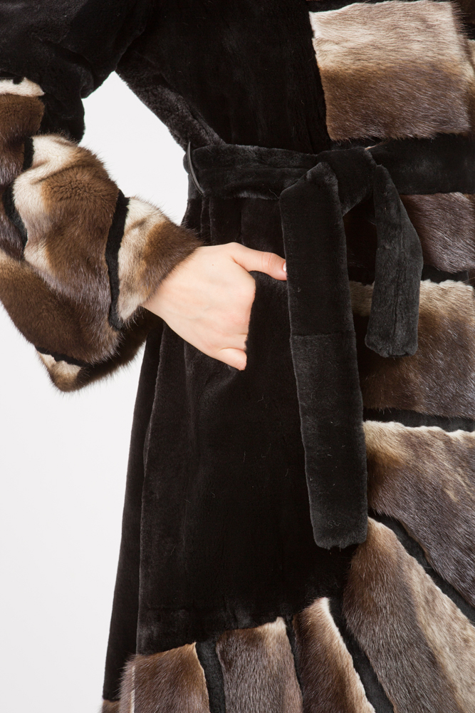 Женское пальто из меха стриженной норки. Модель приталенная с капюшоном. Изделие комбинировано мехом из полноценной норки. Крой изделия поперечная и диагональная выкладка пластин. Нет в наличии.