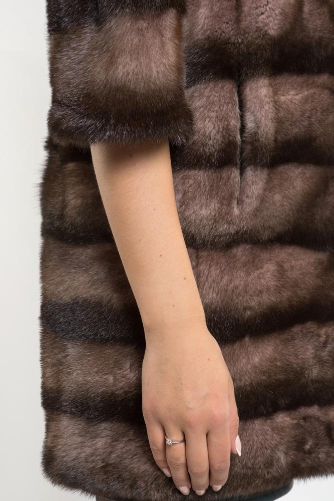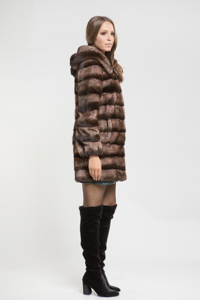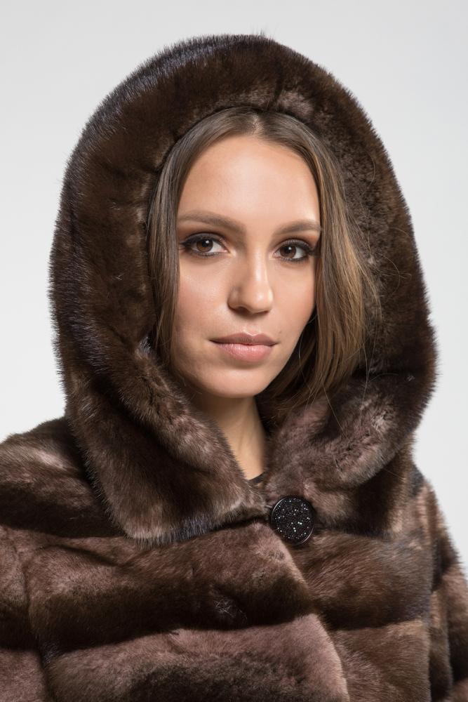 Полупальто из меха норки с капюшоном. Крой изделия - поперечная выкладка пластин. Внутри и на рукавах модели регулирующие утяжки. Длина изделия 90 см. Рукава модели трансформируются в более укороченные. В такой шубке будет тепло и комфортно! Нет в наличии!