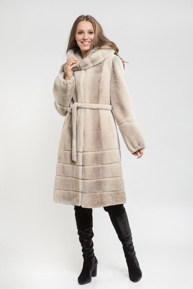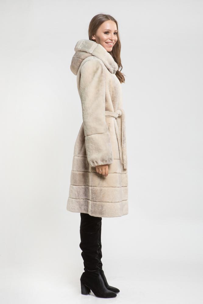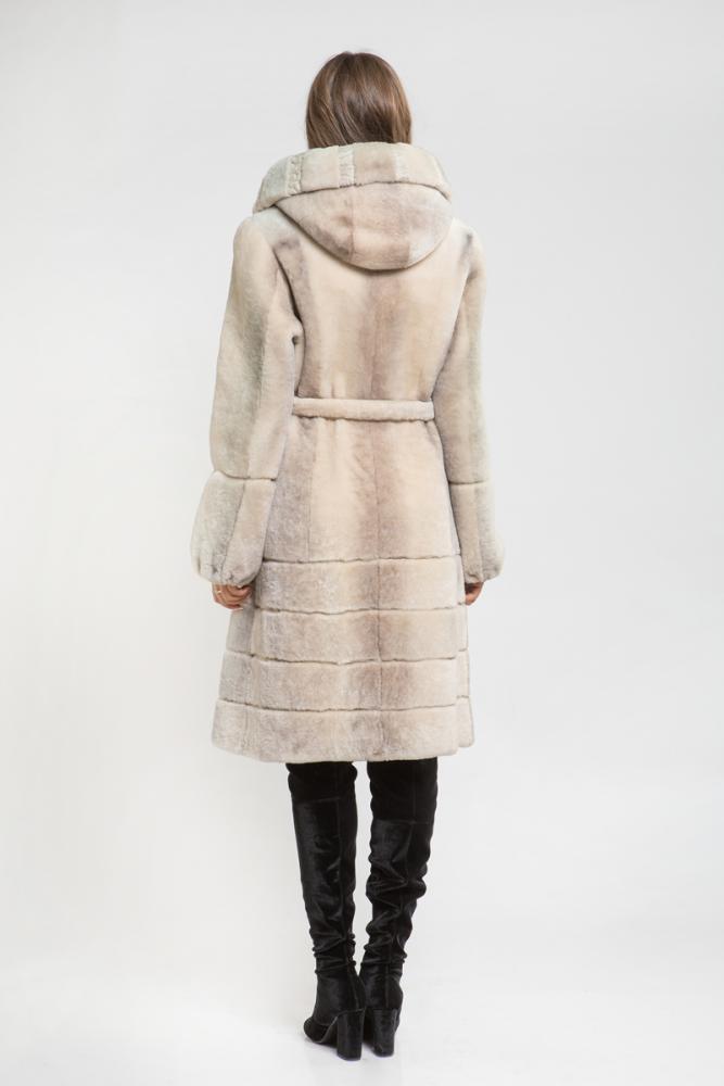 Полупальто из меха овчины с капюшоном. Крой изделия - пластины, по низу юбочки поперечная выкладка пластин. Рукава модели имеют регулирующие утяжки. Элегантная шубка для ценителей строгого классического стиля. Нет в наличии.