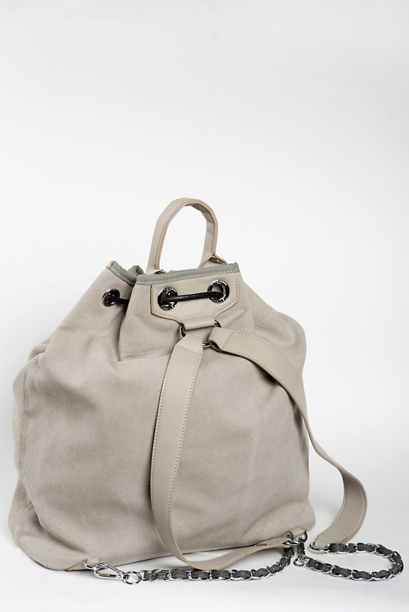 Стильная сумка-рюкзак нежного серого цвета. Выполнена из прочной ткани и декорирована вышивкой пайетками. Внутри рюкзака один отдел. На задней стенке карман для телефона и ключей. Затягивается рюкзачок шнурком.