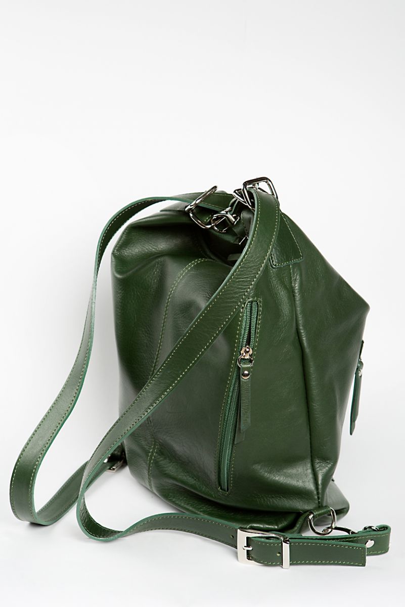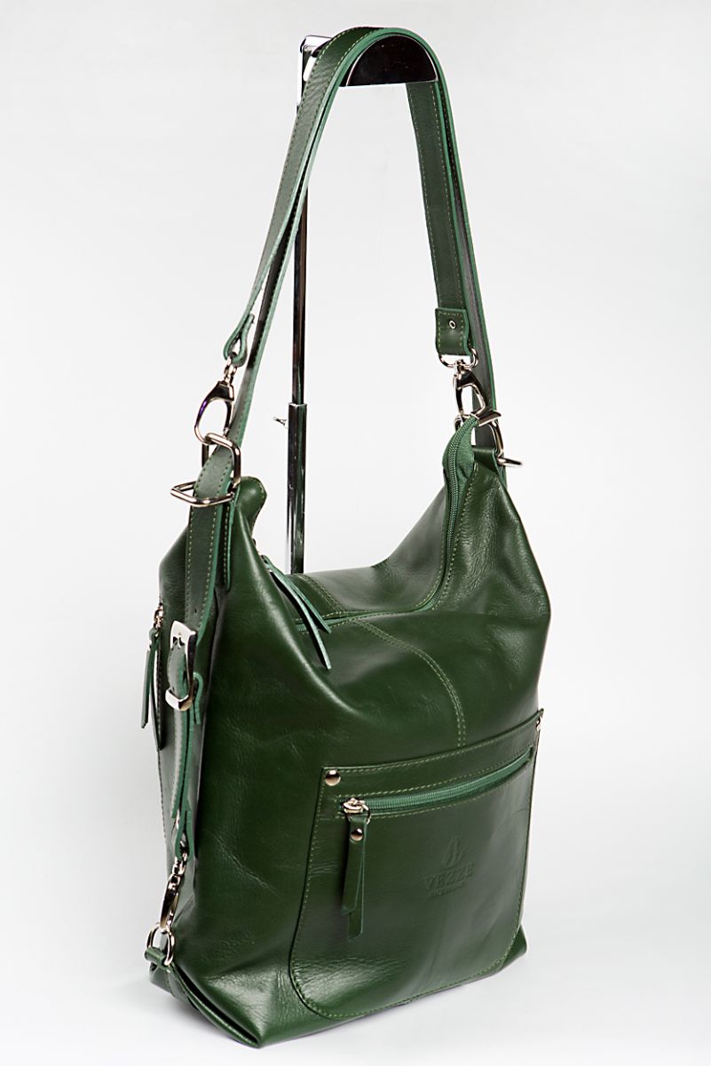 Стильная сумочка из натуральной кожи. Внутри два отдела, разделенных перегородкой. Сумочка закрывается на молнию и имеет кармашки для разных мелочей. Необычность этой модели в том, что она трансформируется в рюкзачок. Идеальная городская сумочка-рюкзак!