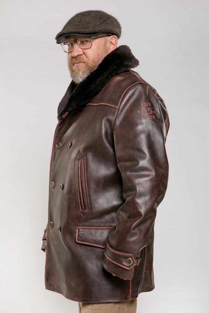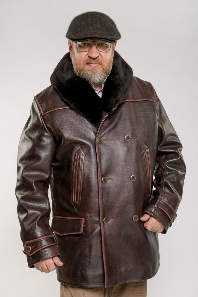 Куртка (бушлат) из плотной, прочной кожи буйвола. Воротник и часть внутренней отделки из меха овчины. У модели стеганная хлопковая подкладка и утеплитель синтепон. Кожа из которой сшита куртка долговечна и надежна. Прекрасно выдерживает перепады температур и держит тепло. Натуральная кожа двойного крашения в процессе носки меняет цвет. Куртка благодаря эффекту старения становится неповторимой, уникальной и имеет винтажный вид!