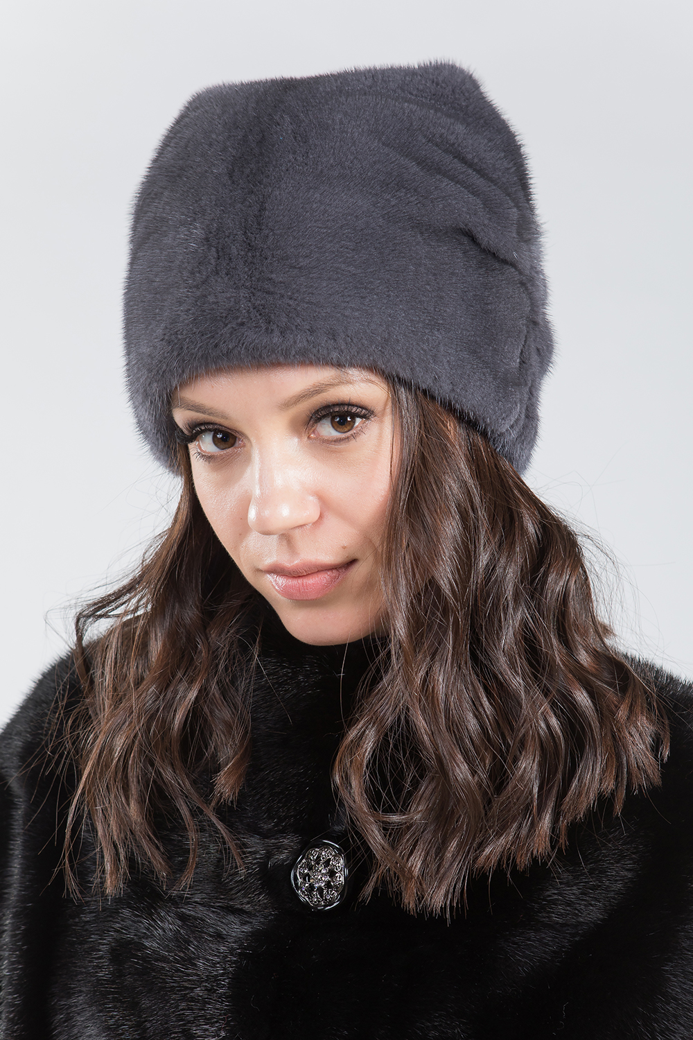Шапка женская из меха норки. Модель внутри оснащена регулирующей резинкой, чтобы шапочка могла подойти на несколько размеров. Изделие декорировано сзади бусинками и стеклярусами. Модель универсальная и теплая, ее легко можно свернуть и положить в женскую сумочку. Она не займет много места и не потеряет форму. Шапочка великолепного цвета графита подойдет к любому меховому пальто и будет согревать в морозную погоду!