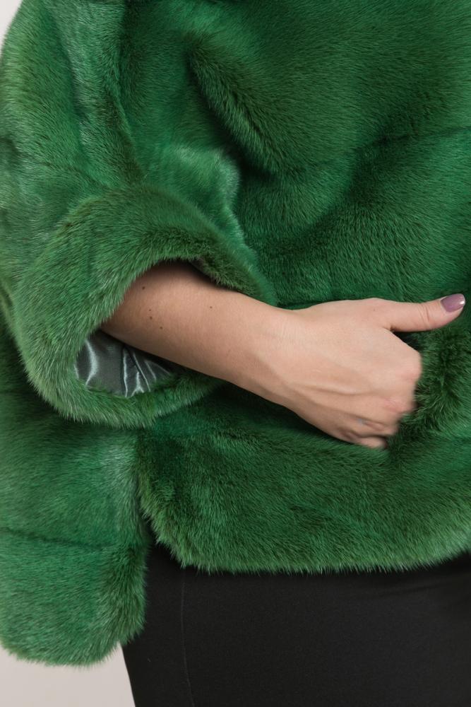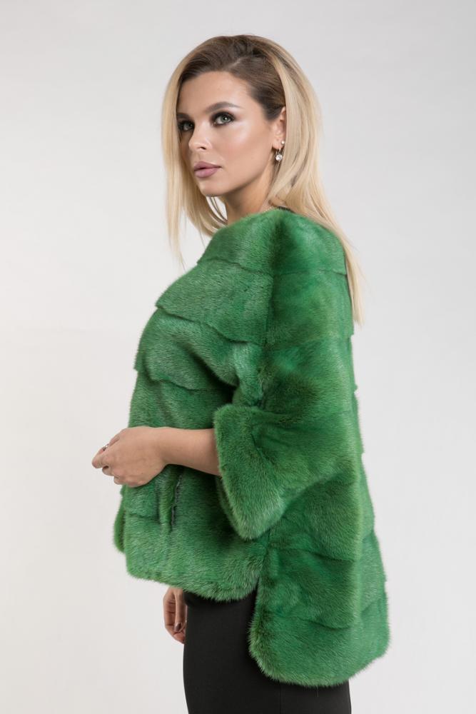 Курточка-свитер из меха норка. Крой изделия поперечная выкладка пластин. Низ спинки модели немного длиннее переда. Универсальный свитерок для осени и весны. Интересный фасон и сногсшибательный травяной цвет придают модели неповторимость.