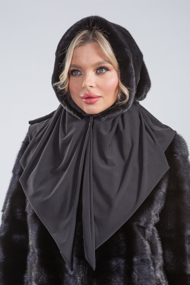 Шапочка легко складывается и помещается в женскую сумочку, не занимая много места и сохраняя свою форму. Благородный чёрный цвет прекрасно сочетается с любым меховым пальто, согревая в морозные дни.