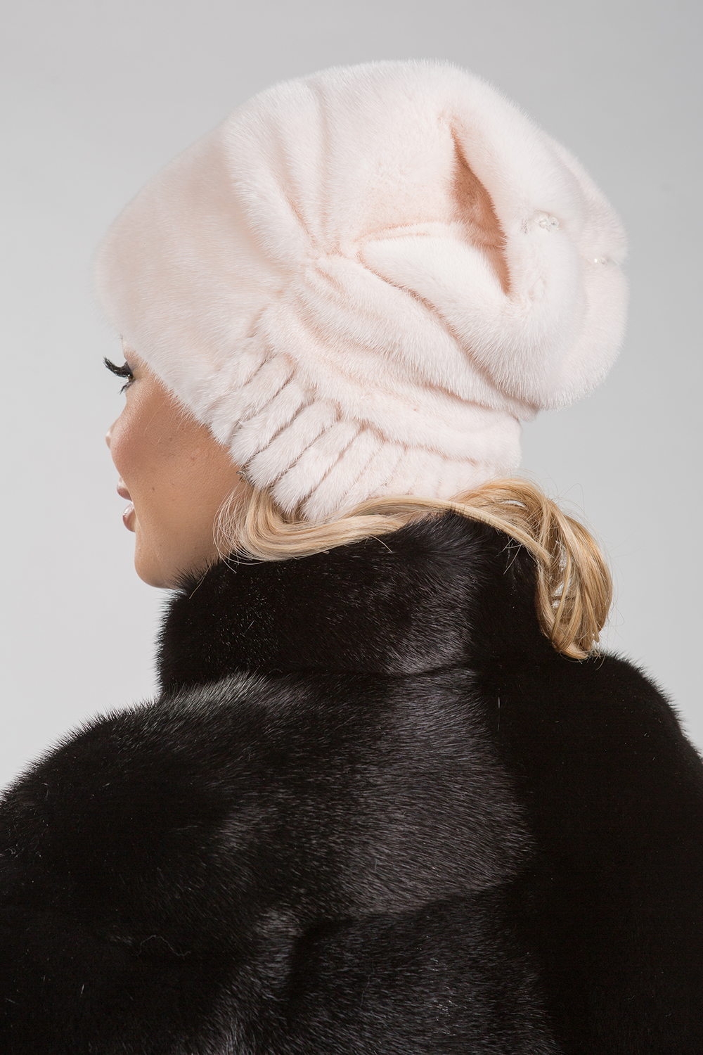 Шапка женская из меха норки. Модель внутри оснащена регулирующей резинкой, чтобы шапочка могла подойти на несколько размеров. Изделие декорировано сзади бусинками и стеклярусами. Модель универсальная и теплая, ее легко можно свернуть и положить в женскую сумочку. Она не займет много места и не потеряет форму. Шапочка великолепного освежающего цвета подойдет к любому меховому пальто и будет согревать в морозную погоду!