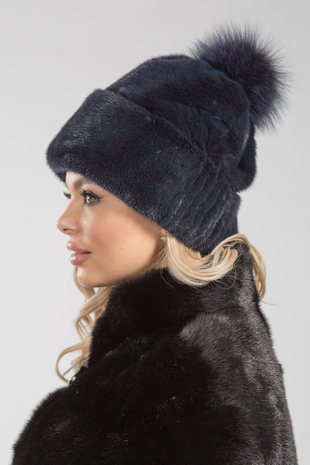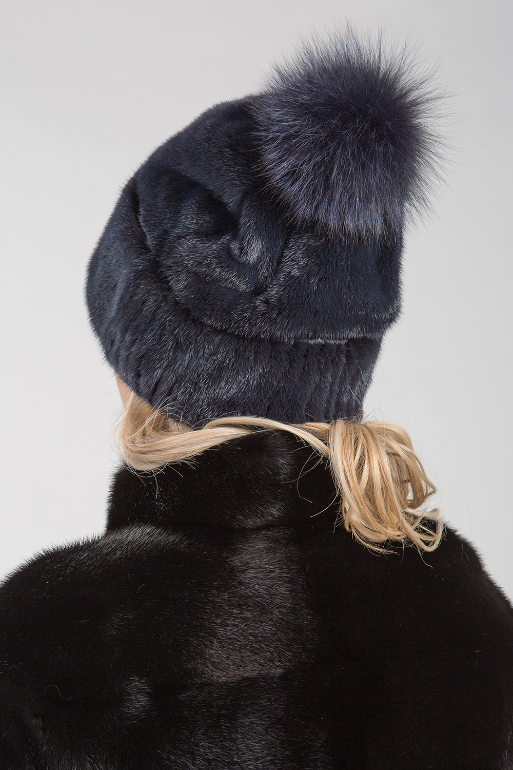 Шапка женская из меха норки. Модель внутри оснащена регулирующей резинкой, чтобы шапочка могла подойти на несколько размеров. Изделие декорировано помпоном из меха лисы, который можно при желании убрать. Модель универсальная и теплая, ее легко можно свернуть и положить в женскую сумочку. Она не займет много места и не потеряет форму. Шапочка великолепного цвета графита подойдет к любому меховому пальто или даже к спортивной куртке!