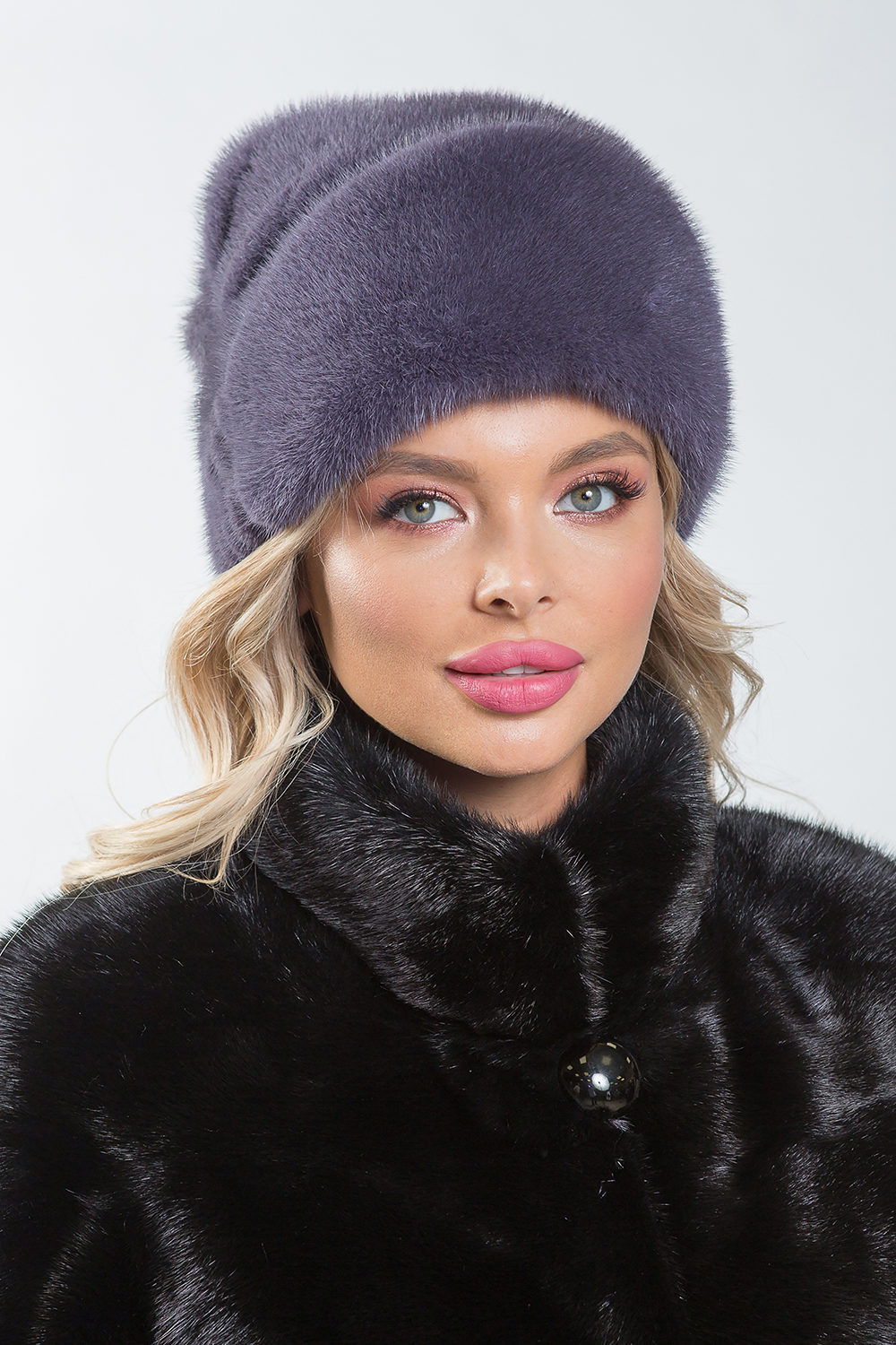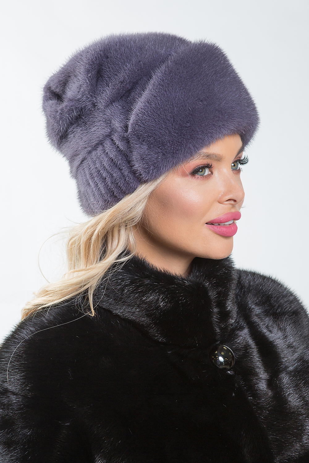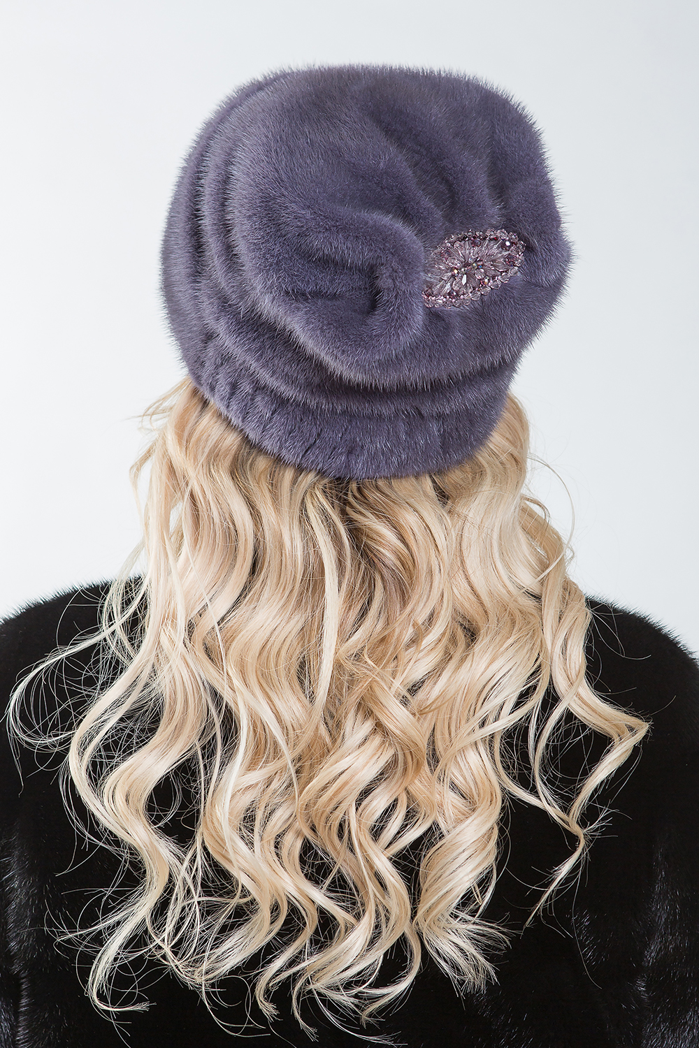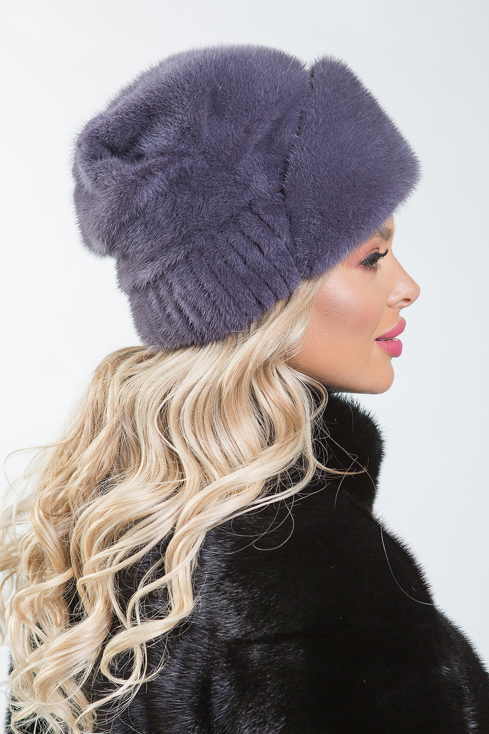 Шапка женская из меха норки. Модель внутри оснащена регулирующей резинкой, чтобы шапочка могла подойти на несколько размеров. Изделие декорировано сзади бусинками и стеклярусами. Модель универсальная и теплая, ее легко можно свернуть и положить в женскую сумочку. Она не займет много места и не потеряет форму. Шапочка великолепного василькового цвета подойдет к любому меховому пальто темного оттенка и будет согревать в морозную погоду!
