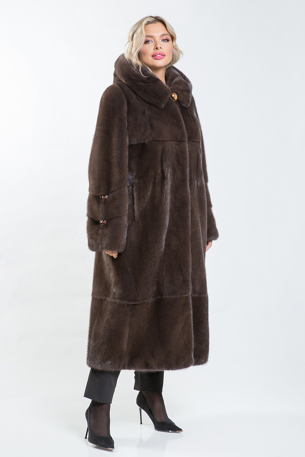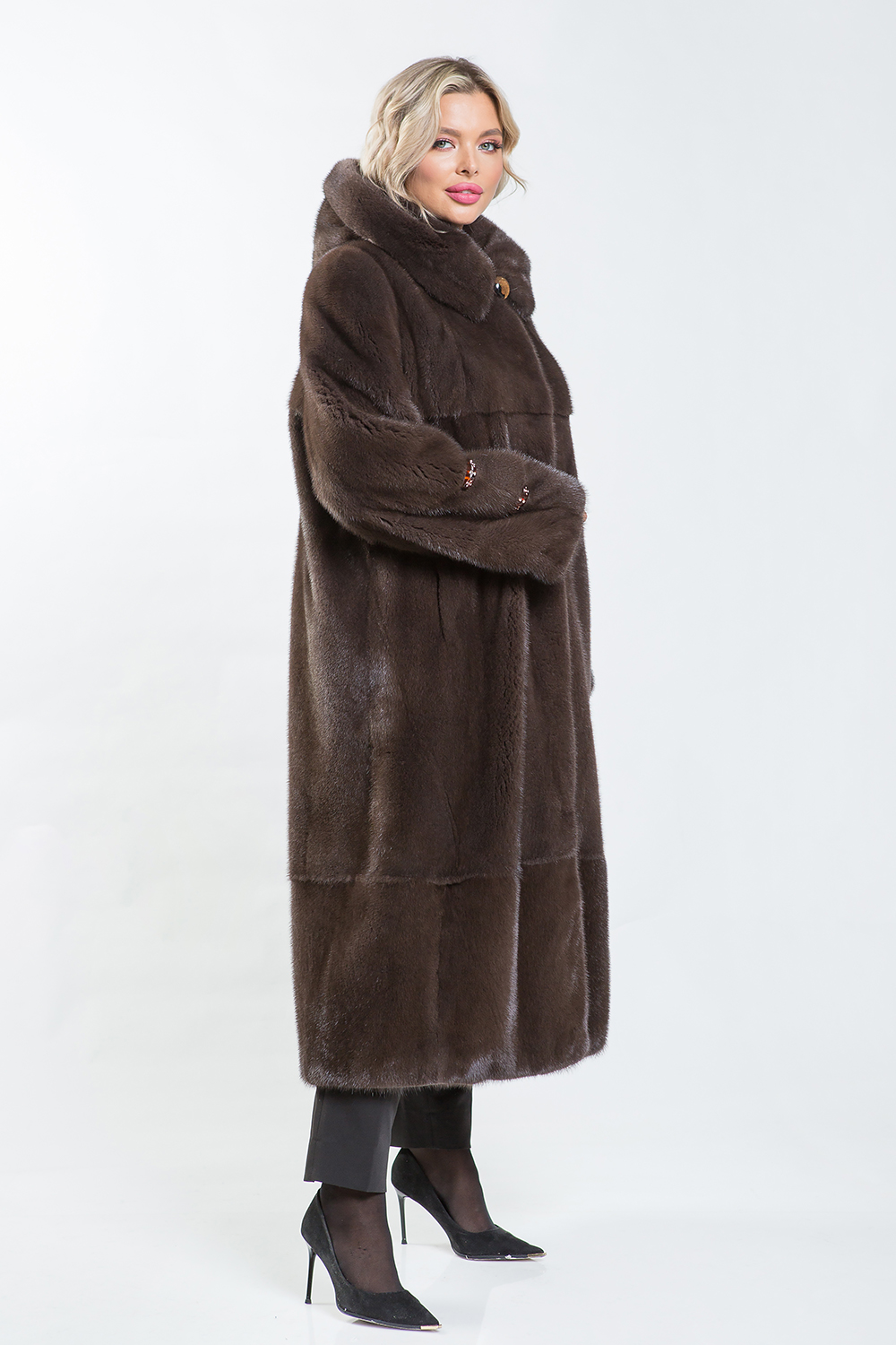 Полупальто из норки с капюшоном — это великолепное изделие, сочетающее в себе классику и элегантность. Крой модели выполнен из пластин с добавлением роспуска, что придаёт ей особый шарм.