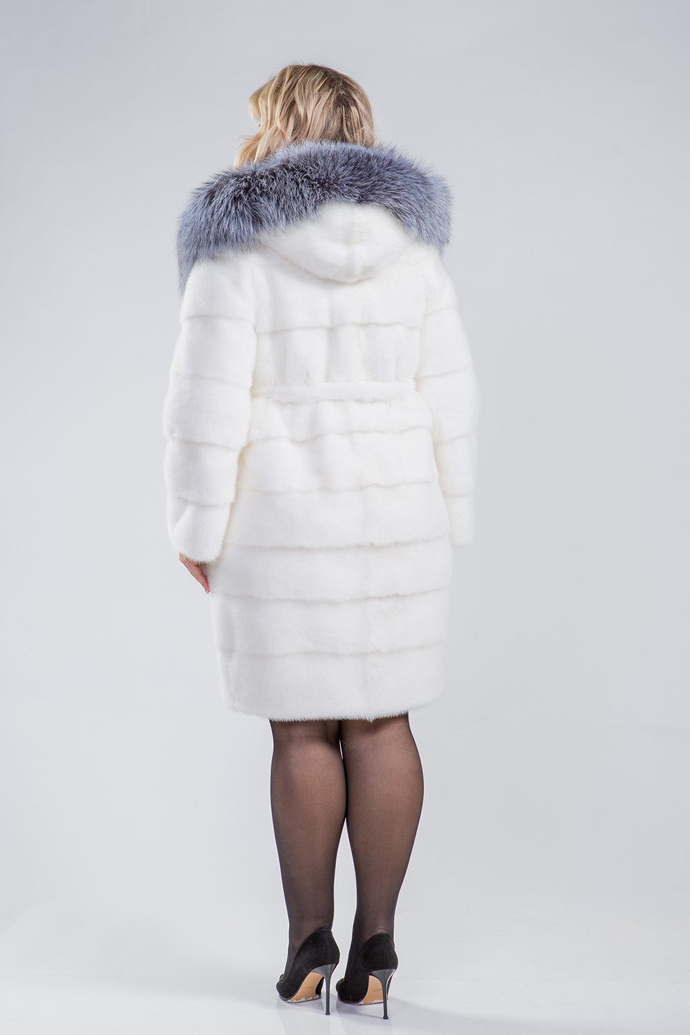 Слегка зауженный низ изделия и уютный капюшон обеспечивают комфорт и изящество этой шубки. Будьте неотразимы в новом норковом пальто!