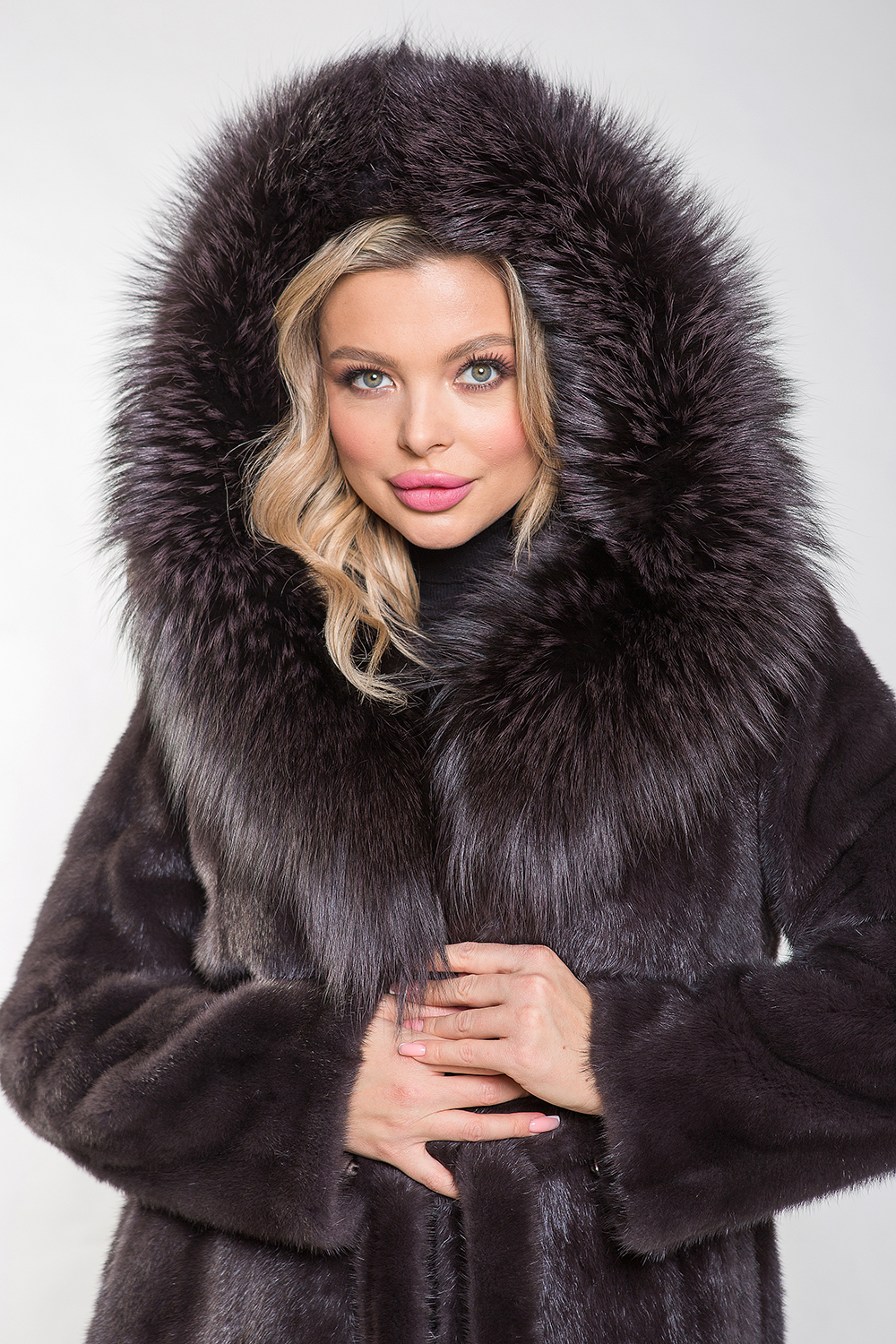 Полупальто из натурального норкового меха, дополненное капюшоном, украшенным мехом тонированной лисы, — это поистине роскошная модель. Оно изготовлено из пластин с роспуском, что обеспечивает ему гибкость и удобство в носке. Рукава снабжены регулирующими утяжками, что позволяет идеально подогнать изделие по фигуре.