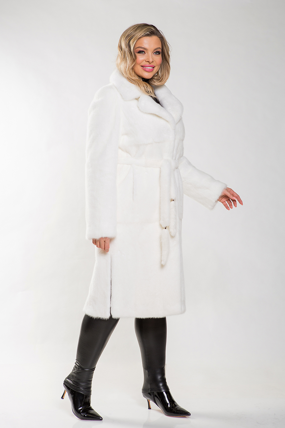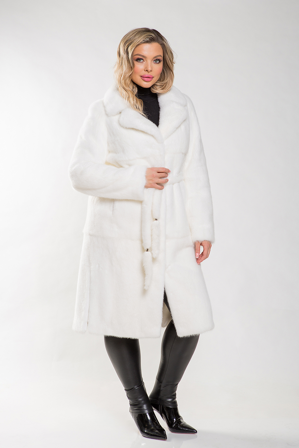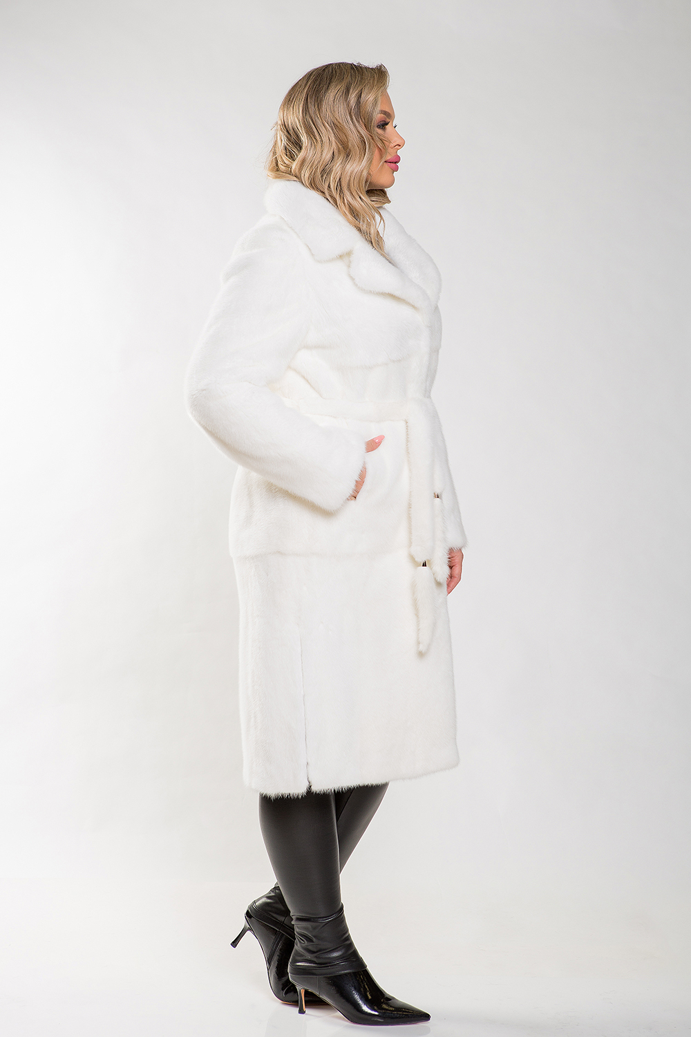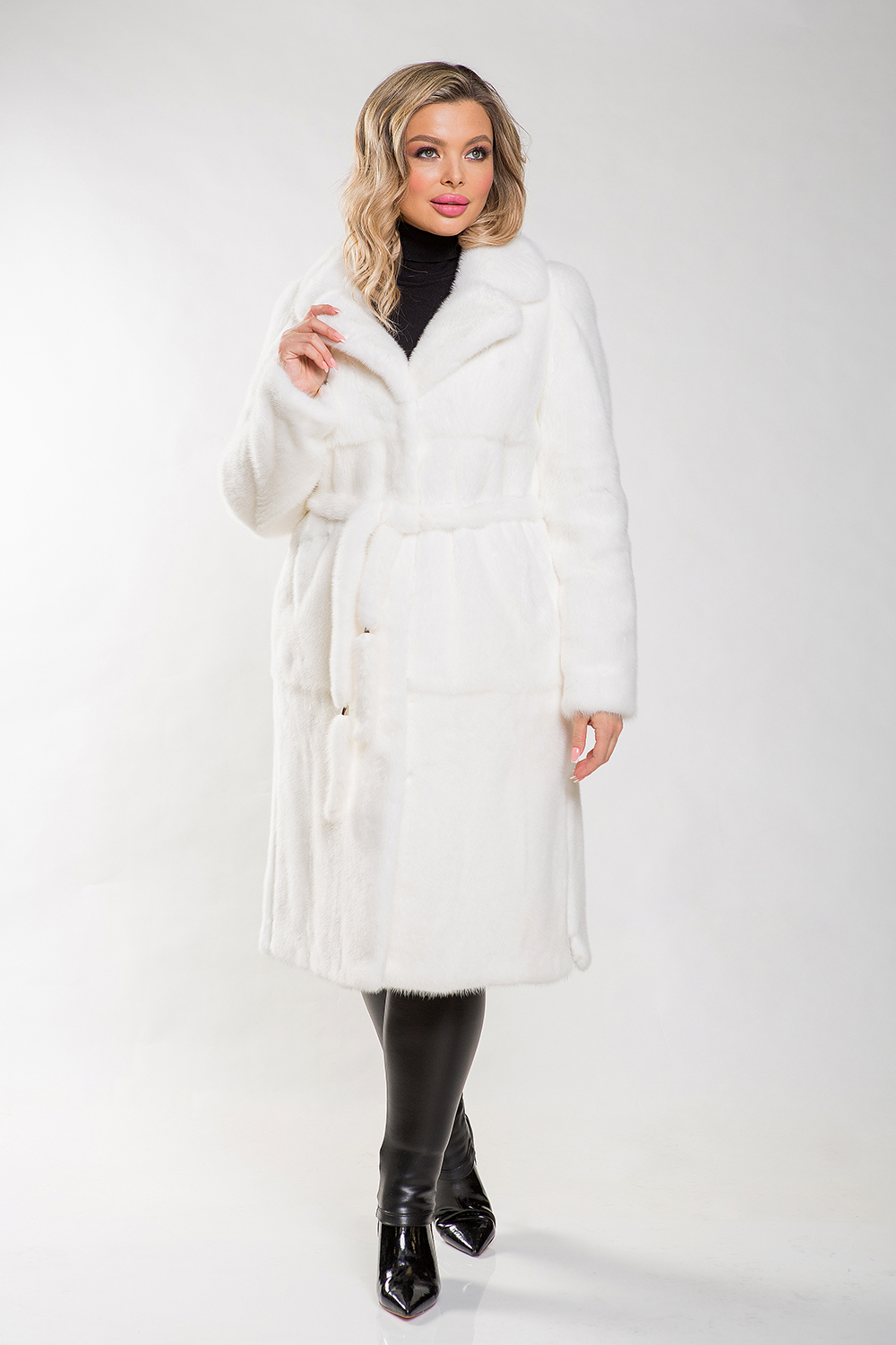 Длина пальто — 120 см. В этом белоснежном шедевре дама будет выглядеть как настоящая королева!