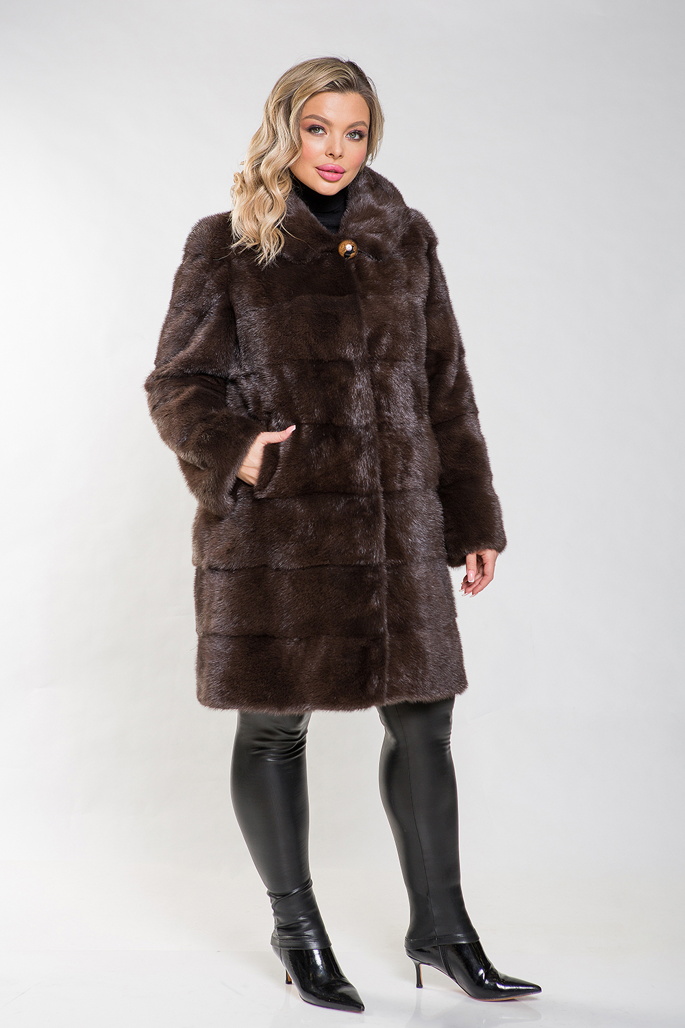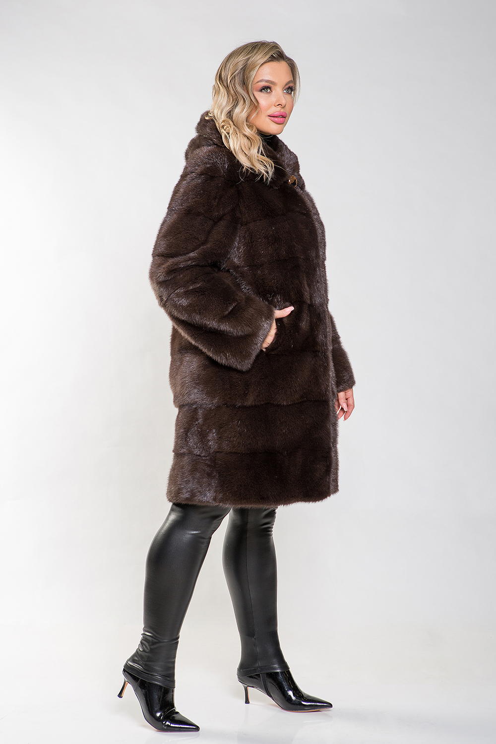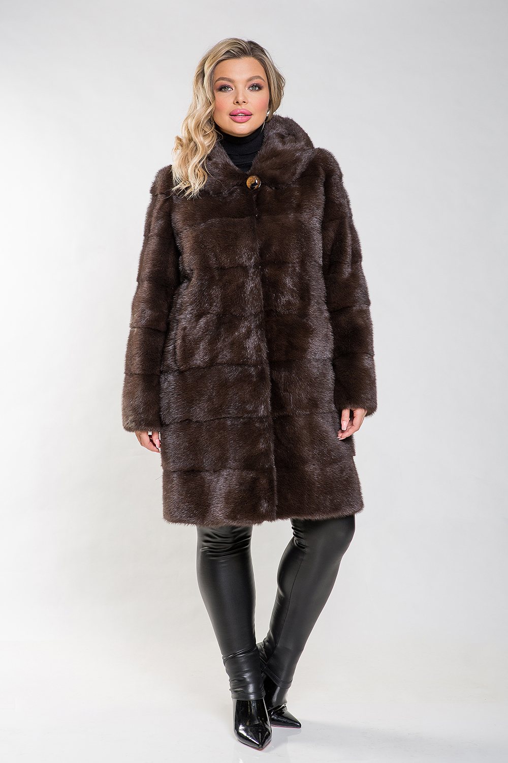 Полупальто из норки с капюшоном — это превосходный выбор для тех, кто ценит удобство и комфорт. Модель имеет оригинальный крой, созданный благодаря поперечной выкладке пластин, что придает ей стильный и современный вид. Длина шубки составляет 100 сантиметров, но её главной особенностью является возможность отстёгивать рукава и низ. Это позволяет легко превратить её в изящную курточку, которая сделает вас неотразимой в любую погоду. Не каждая женщина может позволить себе иметь несколько шуб из норки, но, купив модель-трансформер, вы сможете решить эту проблему. Создавайте новые образы, используя всего лишь одну вещь! Будьте всегда на высоте в вашей новой шубке!