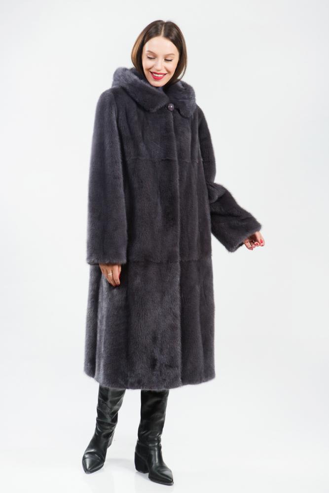 Пальто из меха норки с капюшоном. Крой изделия пластины. Внутри на талии и на рукавах модели имеются регулирующие утяжки. Длина изделия 120 см. Такая шубка хорошо сидит на любой фигуре и подойдет девушкам от 48 размера до 60. Универсальный вариант! Профессиональные стилисты меховой индустрии считают классический силуэт безошибочным вариантом!
