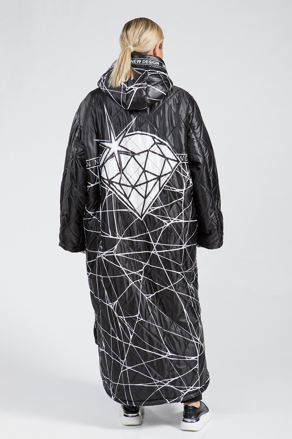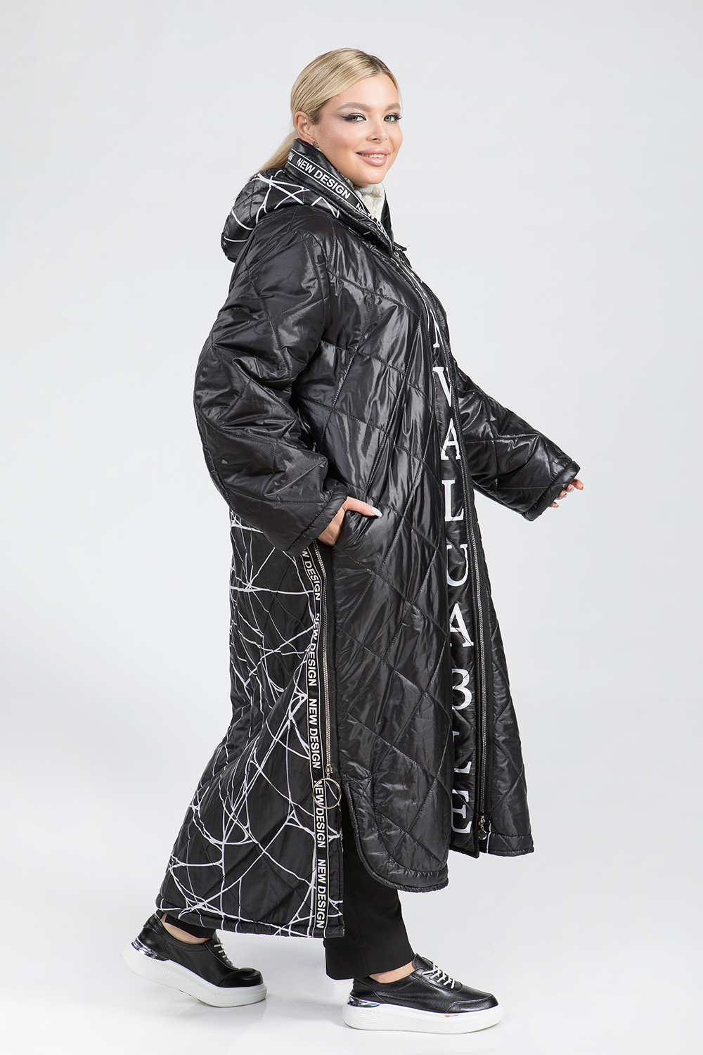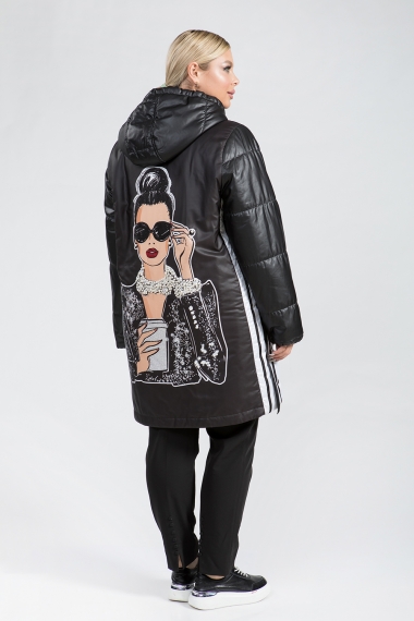Полупальто женское из текстиля с утеплителем. Утеплитель из искусственного меха и рассчитан на прохладную весну-осень или на теплую зиму. По бокам модели декоративные замочки и есть кармашки. Капюшон изделия также утеплен мехом. Полупальто застегивается на молнию. На спине модели яркий принт. Длина изделия спереди 110 см, а сзади 130 см. Полупальто оригинальное, комфортное и подойдет девушкам любой комплекции!