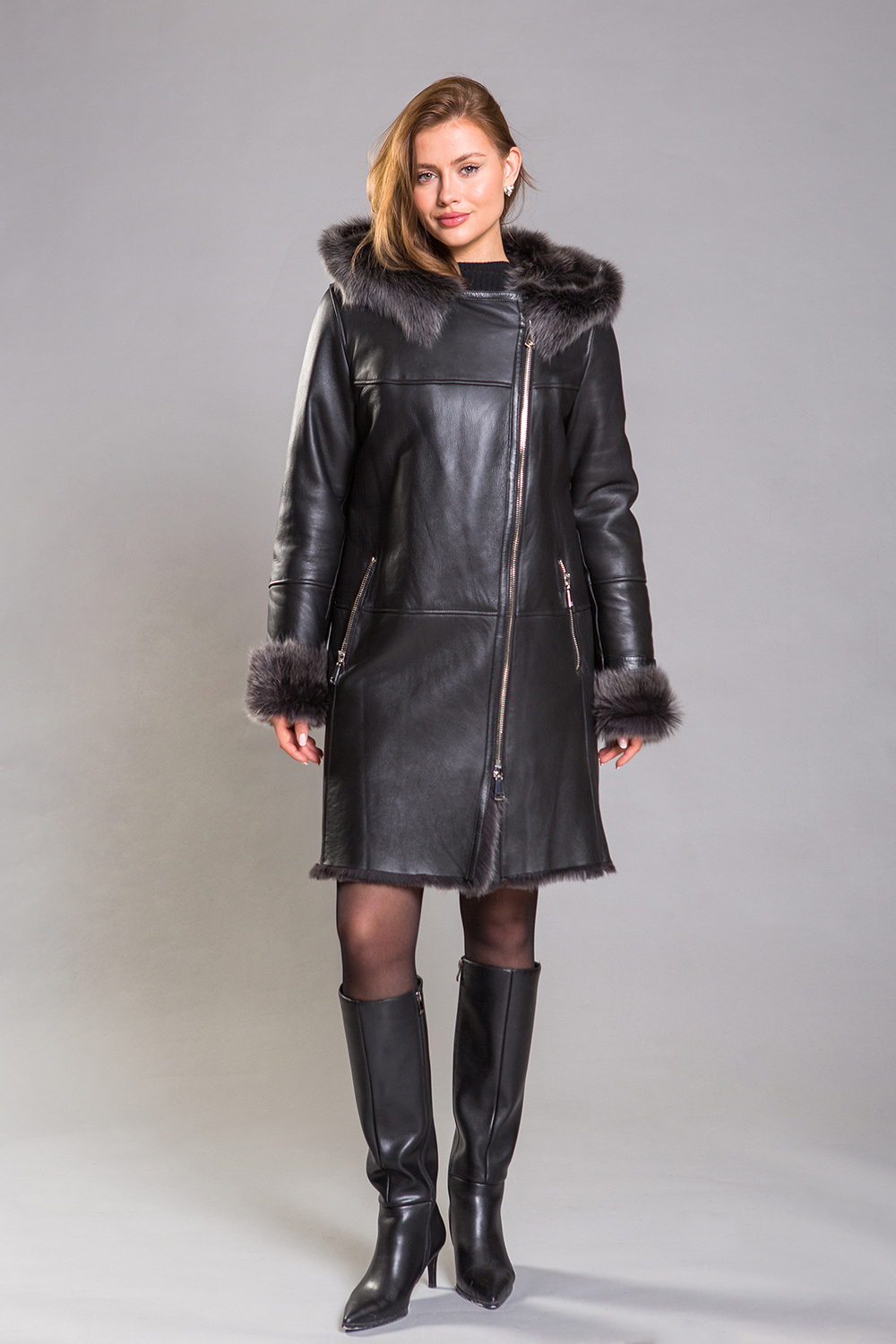 Женская дублёнка, изготовленная из натурального тосканского ягнёнка, станет вашим верным спутником в любую погоду. Эта модель застегивается на молнию, а рукава могут подворачиваться и дополняться декоративными ремешками. Молнии также расположены на карманах и по бокам.