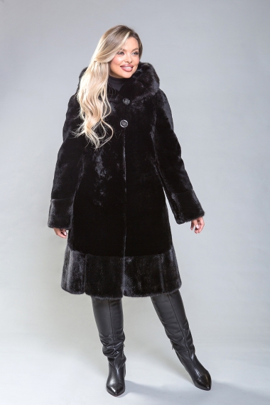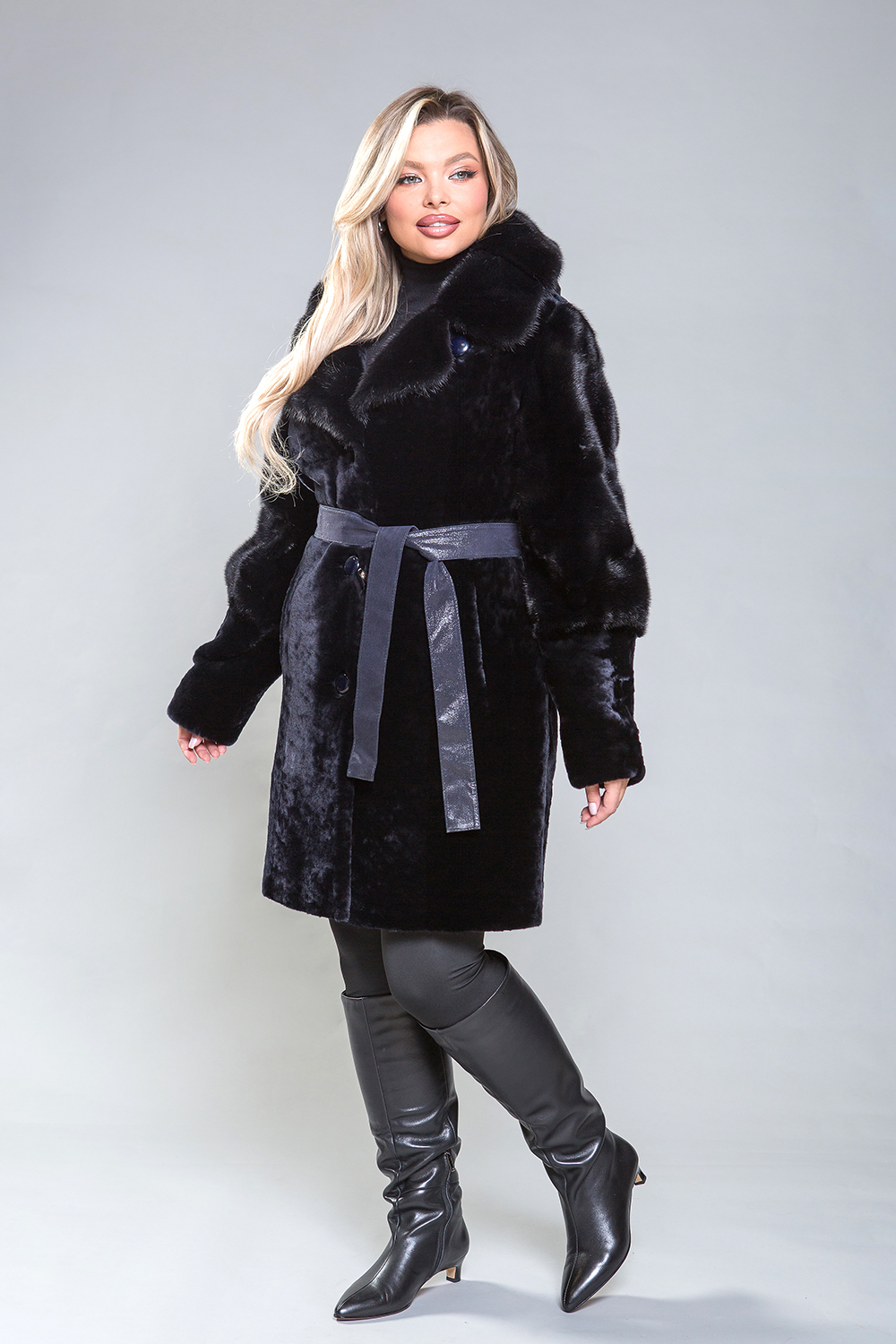 Эффектное полупальто из премиальной овчины с изысканными деталями. Капюшон и рукава до локтя выполнены из норки. Высококачественная овчина премиум-класса обеспечивает тепло и комфорт, оставаясь эффективной даже при высокой влажности. Капюшон можно сложить в английский воротник или зафиксировать пуговицей. Модель застегивается на пуговицы. Карманы и края полупальто изготовлены из натуральной замши. Длина изделия — 95 сантиметров, что делает его удобным для повседневной носки. Легкий вес и отличная теплоизоляция делают это полупальто ключевым элементом гардероба. Стильная и оригинальная шубка не останется незамеченной!