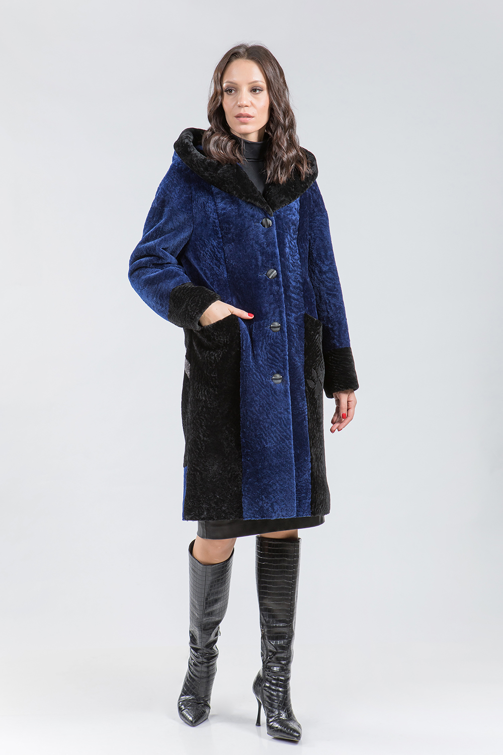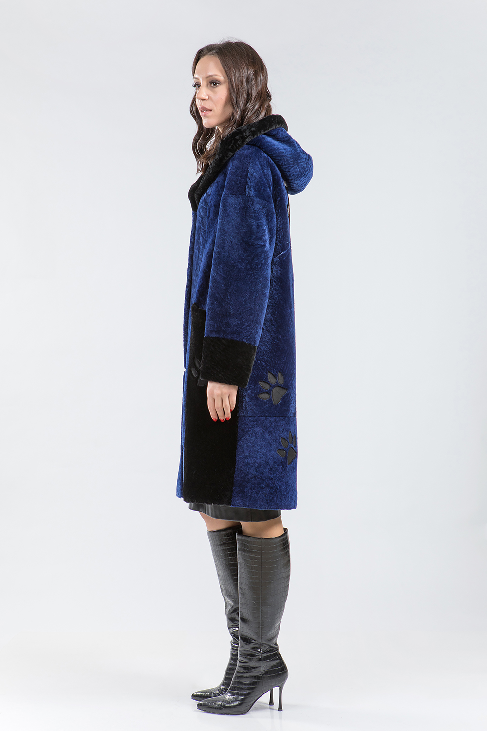 Полупальто из меха овчины (астрагана) с капюшоном. Крой изделия пластины. Модель застегивается на пуговицы и имеет накладные карманы. Длина изделия 105 см. На спине шубки декоративные вставки и вышивка в виде милой кошки! Натуральный мех шубки не боится атмосферных осадков, сохраняет тепло и защищает от ветра!