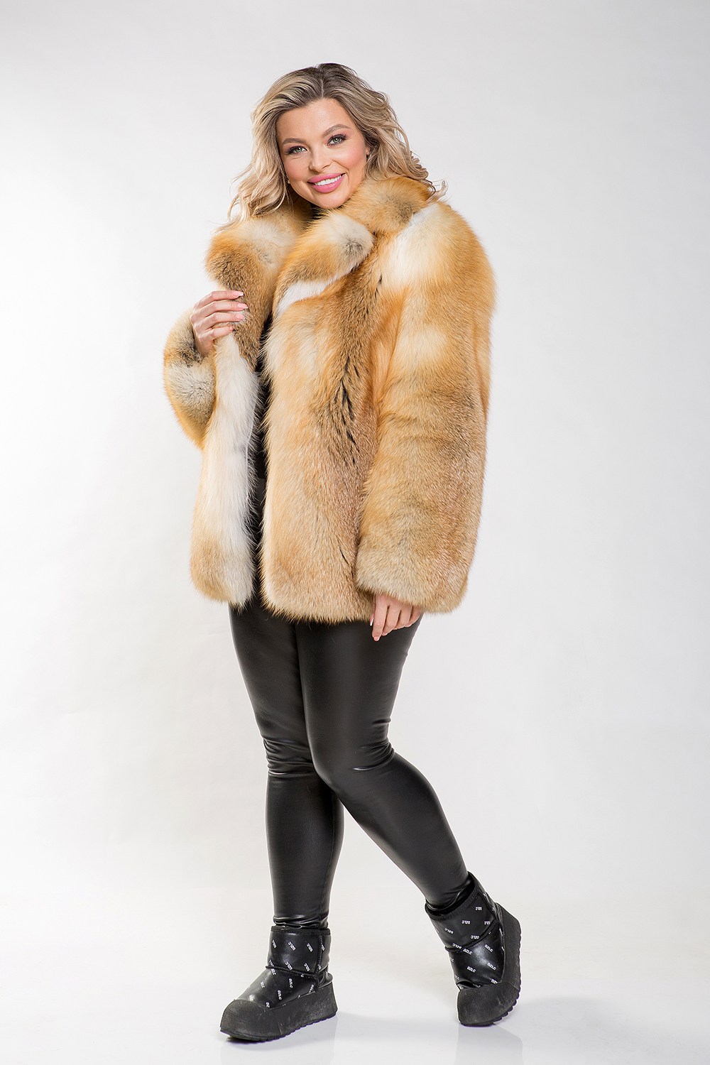 Роскошная курточка из меха лисы с английским воротником — это настоящее украшение для вашего гардероба. Внутри на талии имеется регулирующая утяжка, которая позволяет создать идеальный силуэт. Длина модели составляет 70 сантиметров.