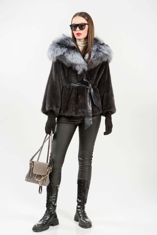 Кожаный пояс, продеваемый внутрь курточки, добавляет ей оригинальности и изысканности. А благодаря роскошной отделке из чернобурой лисы, шубка выглядит просто великолепно, привнося в образ нотки шика и гламура.