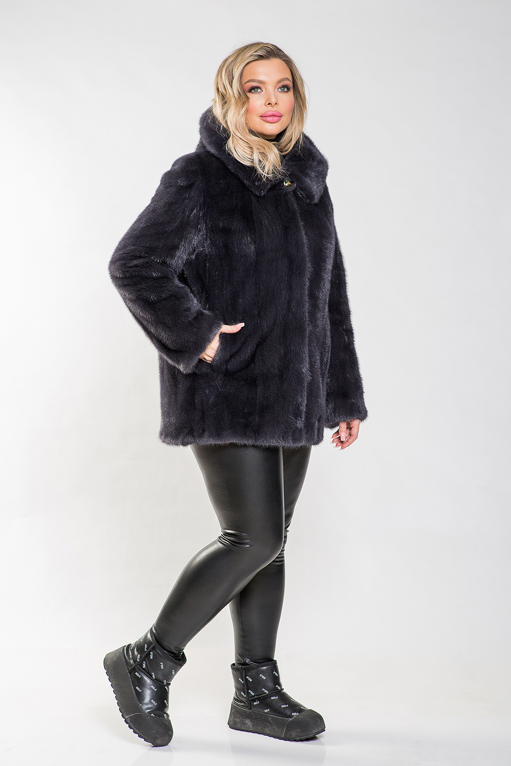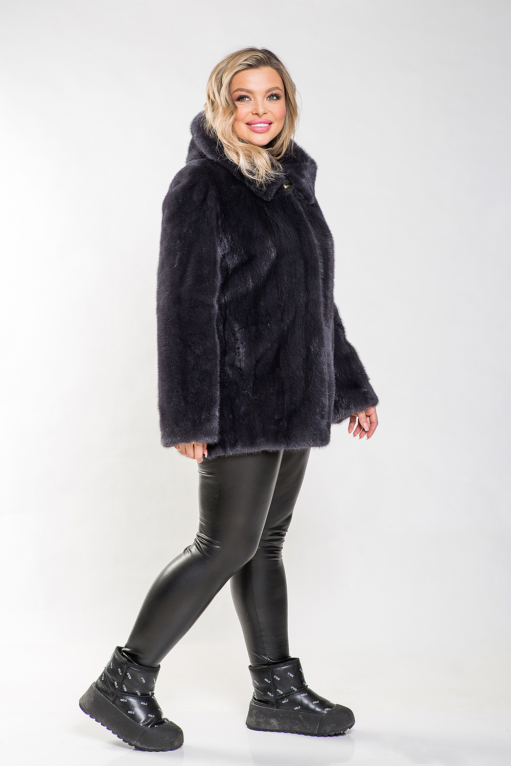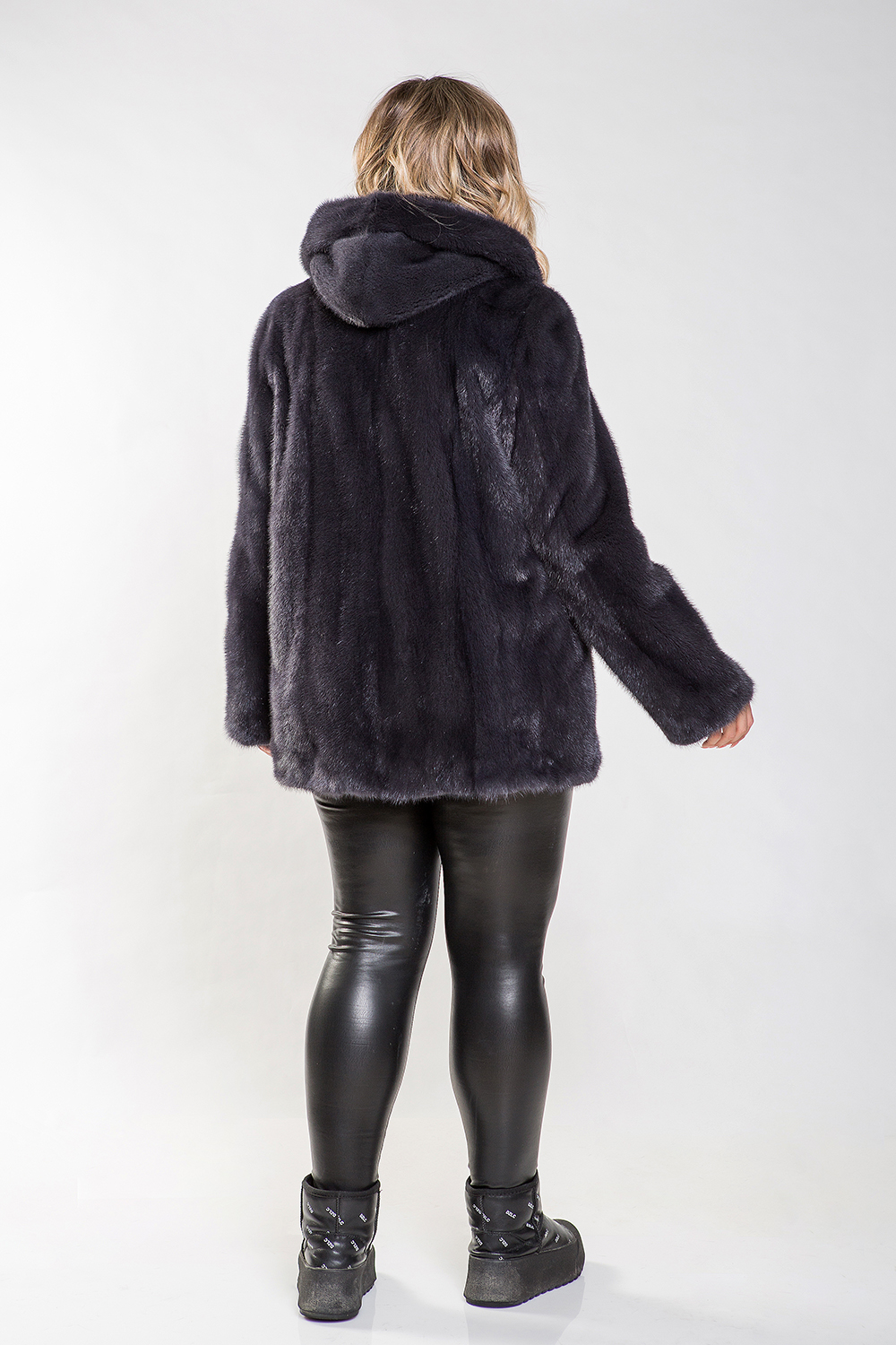 Норковая курточка с капюшоном, выполненная в стиле «роспуск». Эта модель отличается регулируемыми утяжками на рукавах, внизу изделия и в области талии, что позволяет создать идеальный силуэт. Длина курточки составляет 80 сантиметров.
