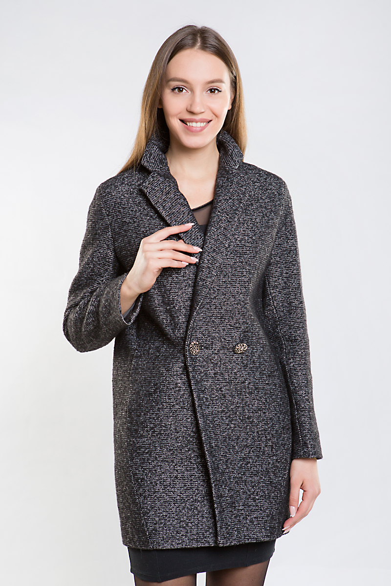 Стильное молодежное пальто прямого кроя. Воротник с лацканами. Изделие застегивается на пуговицу. Такая универсальная модель одинаково хорошо будет смотреться как с юбочками, так и с брюками.