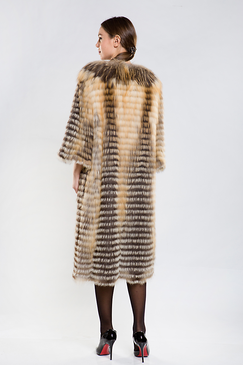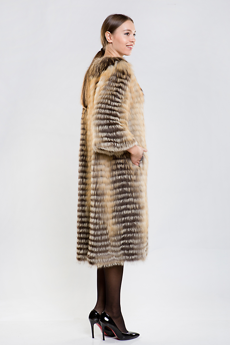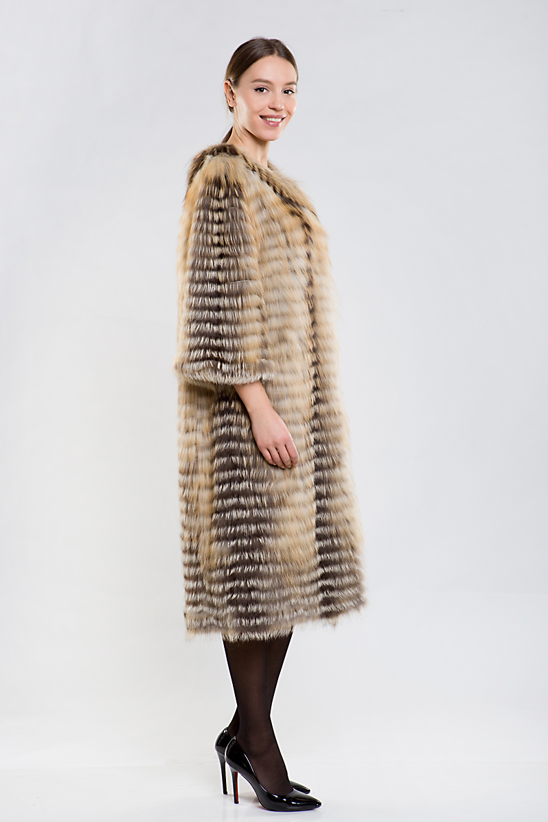 Полупальто из меха лисы на трикотажной основе. Рукава модели слегка укорочены, что позволяет удачно сочетать шубку с длинными перчатками или митенками. Такое оригинальное пальто согреет вас в прохладную погоду!