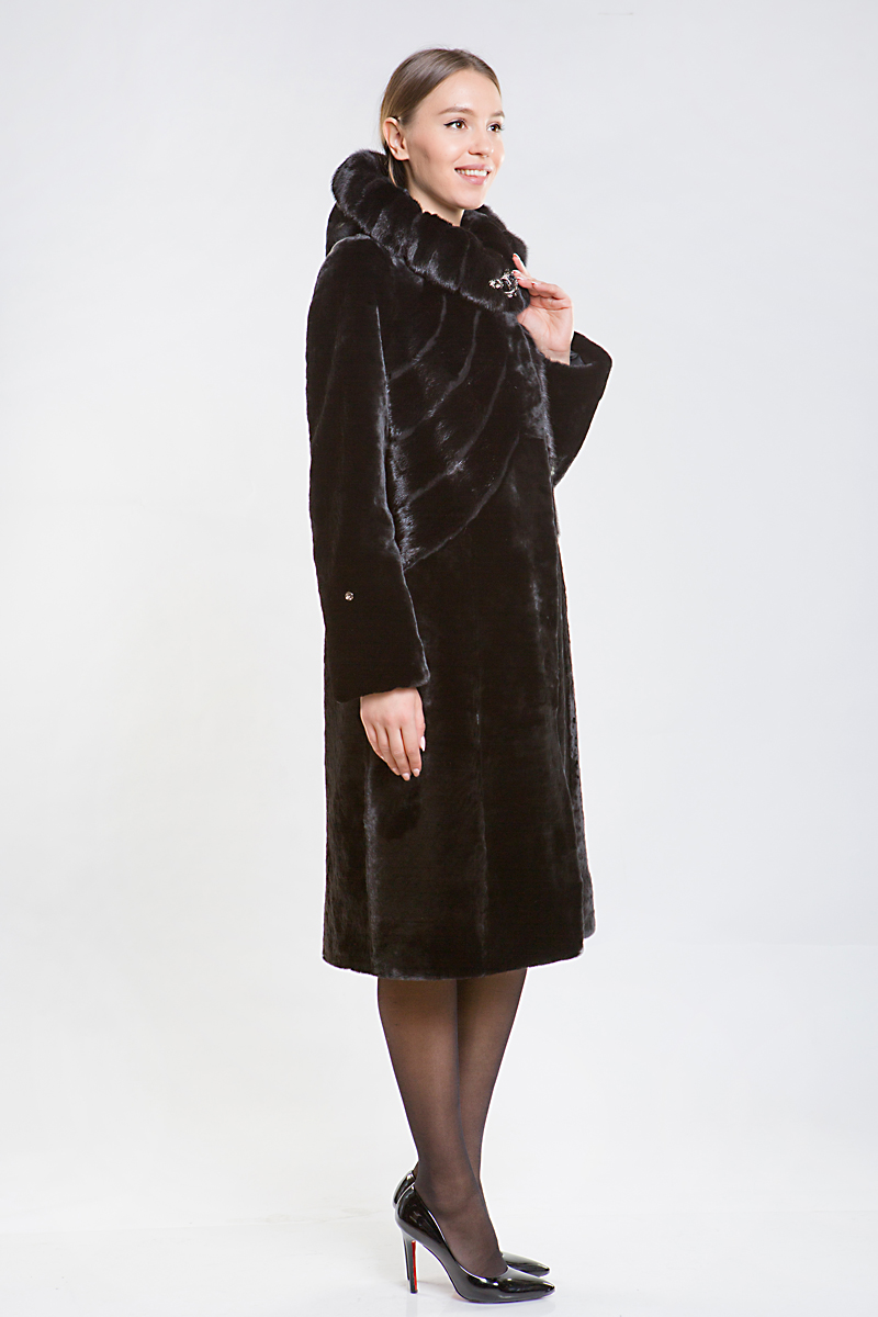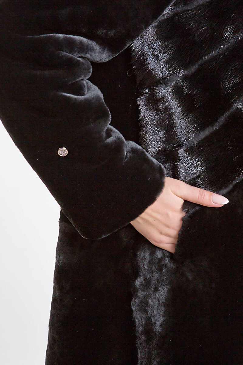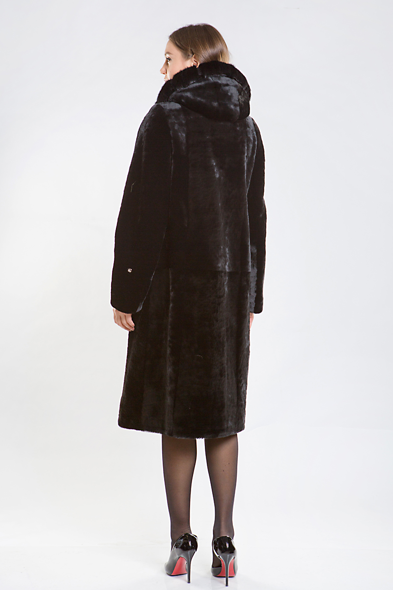 Полупальто из меха овчины. Капюшон изделия и верх модели декорирован мехом норки. Лаконичный прямой силуэт подойдет девушкам любой комплекции. В такой шубке вам будет очень тепло и комфортно!