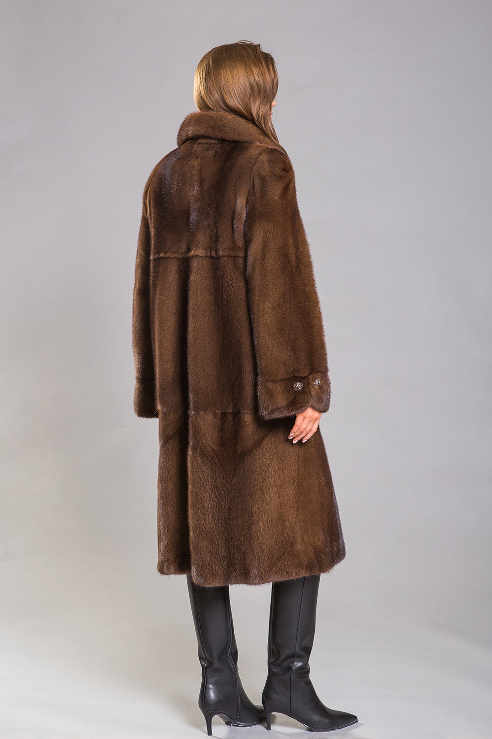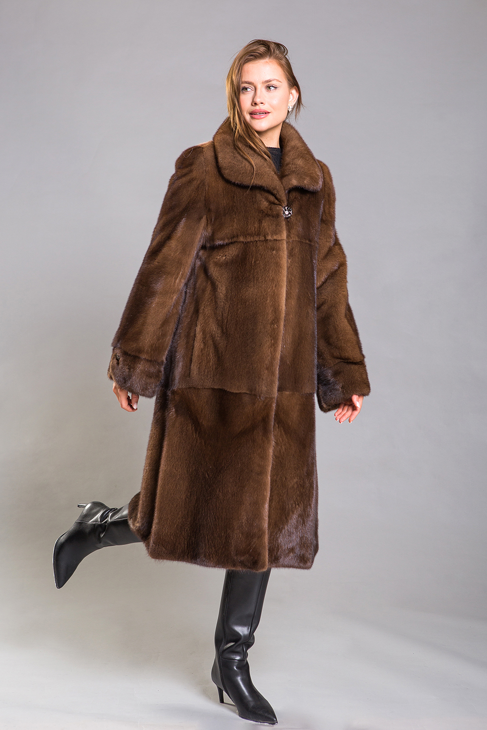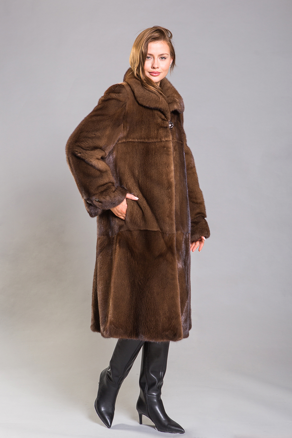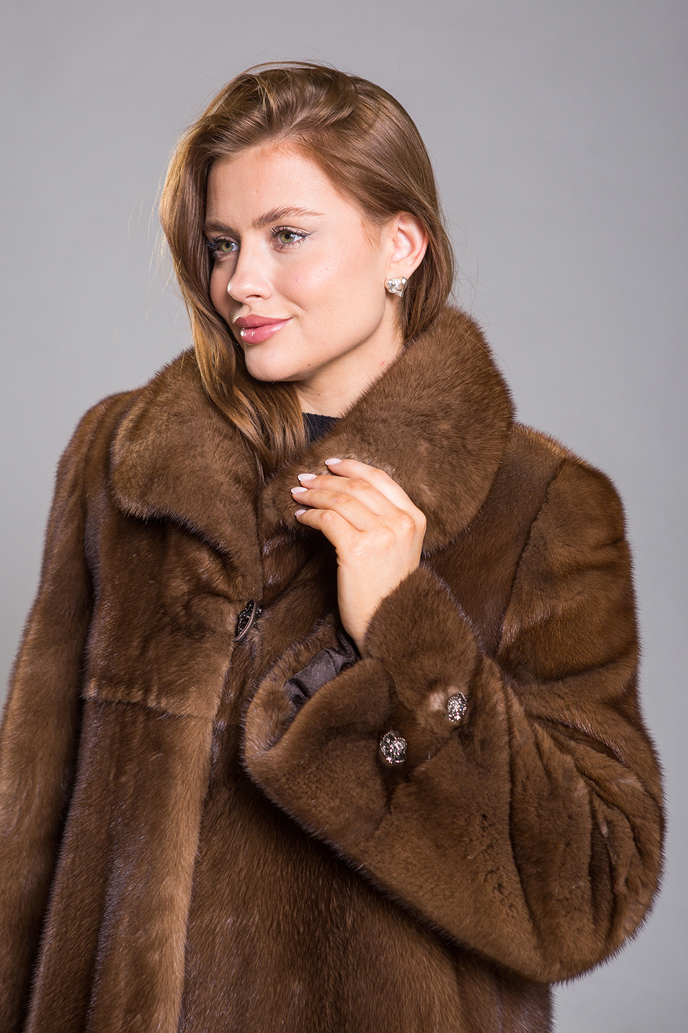 Полупальто из норки с воротником — это воплощение элегантности и стиля. Модель выполнена из пластин с добавлением роспуска, что придаёт ей неповторимый шарм. Длина шубки составляет 115 сантиметров, что делает её универсальной и подходящей для любого случая. Рукава украшены оригинальными пуговицами, которые при желании можно снять. Стилисты считают, что это меховое пальто станет идеальным выбором, который придаст вашему образу изысканность и элегантность. А прекрасный миндальный цвет освежает и омолаживает!