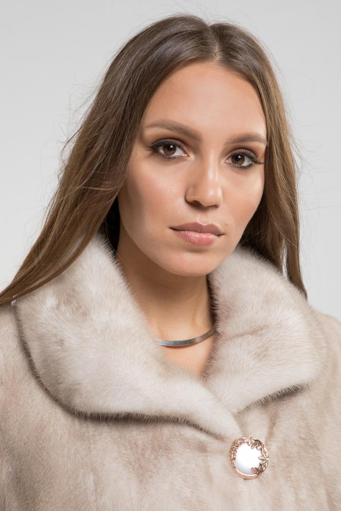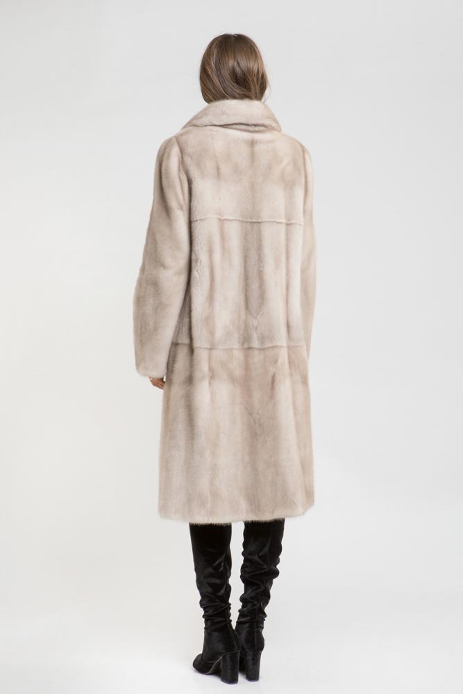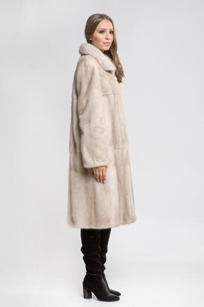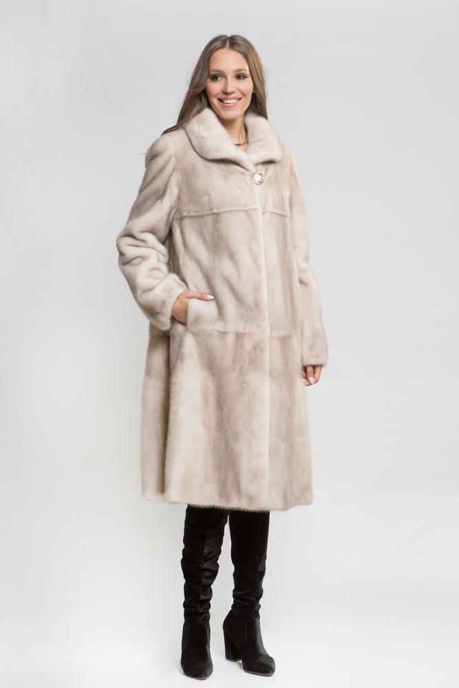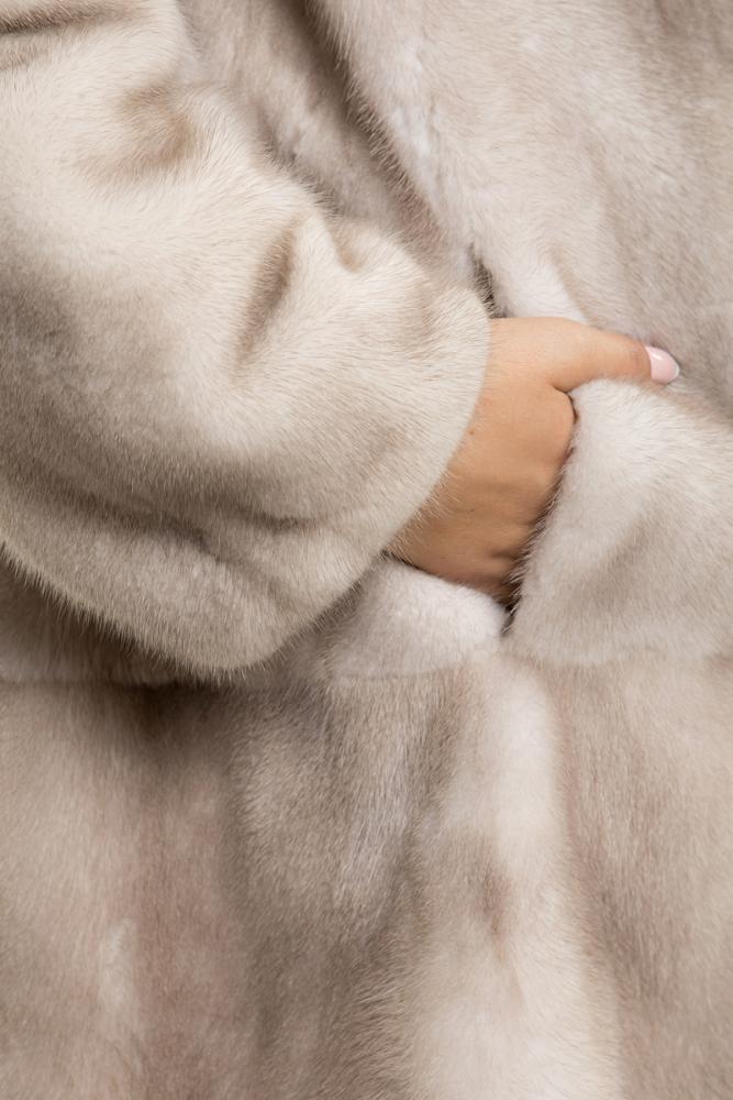 Полупальто из меха норки с классическим воротником. Крой изделия - пластины с добавлением роспуска. Модель оснащена регулирующими утяжками на рукавах и на талии. Длина изделия 115 см. Нежная шубка в светлых тонах освежает и омолаживает образ! Элегантная модель для ценительниц классического стиля и не требует ярких дополнений!