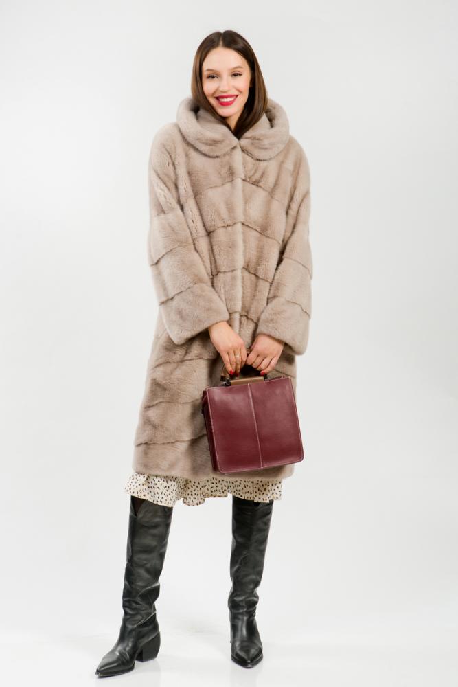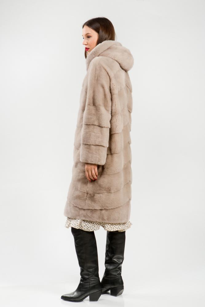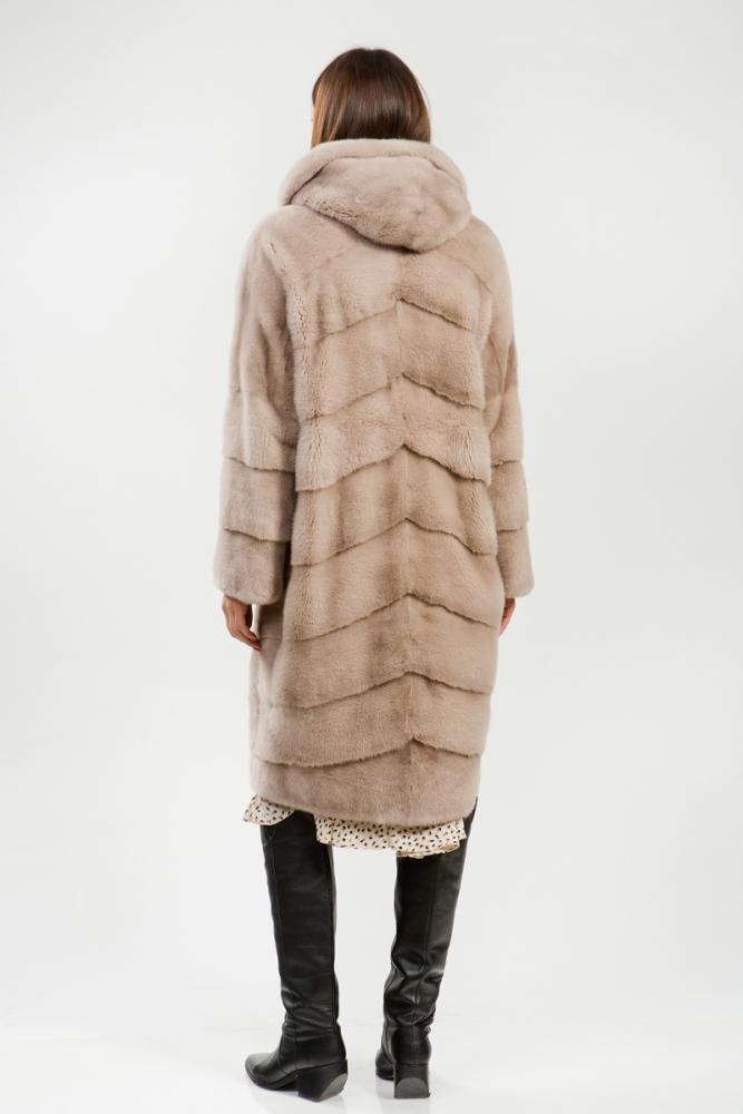 Полупальто из меха норки с капюшоном. Крой изделия диагональная выкладка пластин. На рукавах модели есть регулирующие утяжки. Длина изделия 110 см. Такая шубка в светлых тонах циркона является замечательным вариантом для тех, кто не хочет хандрить в пасмурные морозные дни, а предпочитает радовать себя привлекательными луками, поднимающими настроение! Тем более светлая шубка всегда освежает и омолаживает образ!
