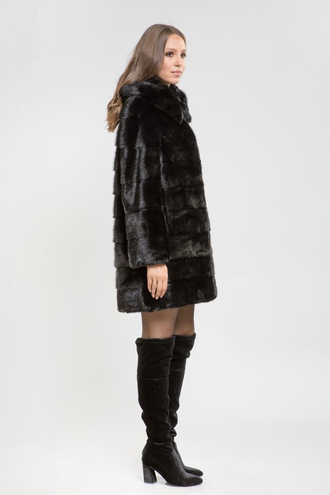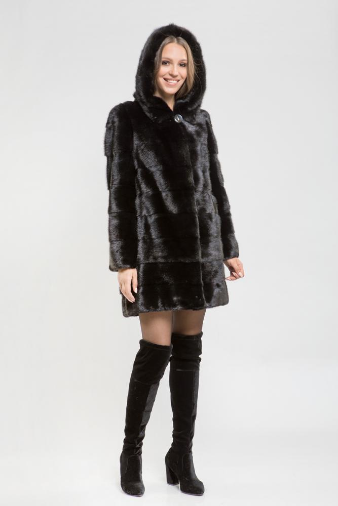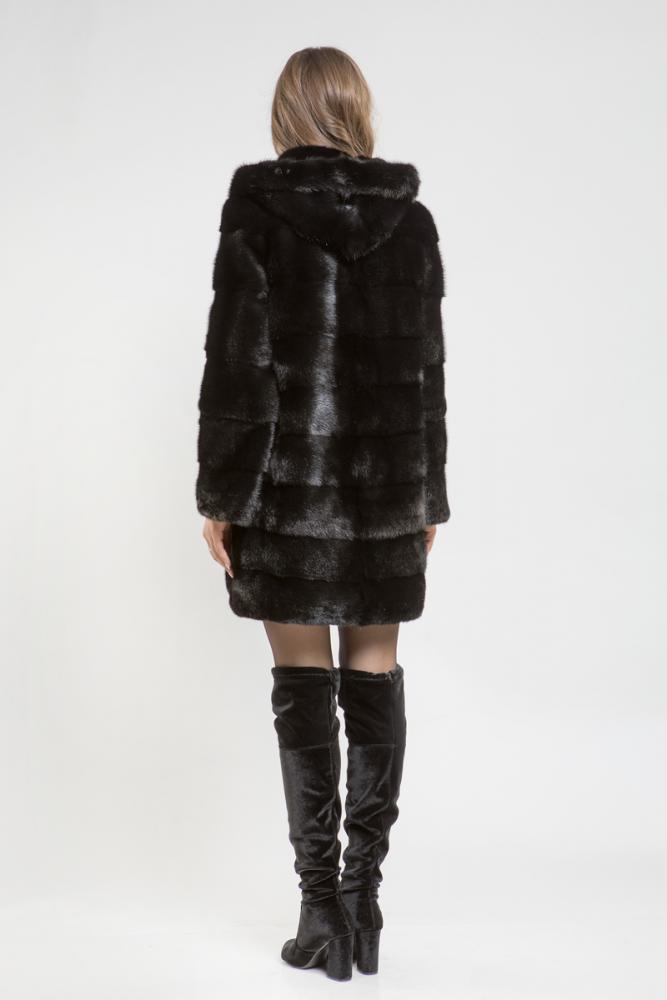 Полупальто из меха норки с капюшоном. Крой изделия - поперечная выкладка пластин. Длина шубки 90 см. Рукава и низ модели отстегиваются и шубка трансформируется в миниатюрную изящную курточку. Не каждая леди может включить в свой гардероб несколько шуб из норки. Покупка модели трансформера устраняет проблемы, позволяет менять образ, используя для этого одну модель! Будьте обворожительны в новой шубке!