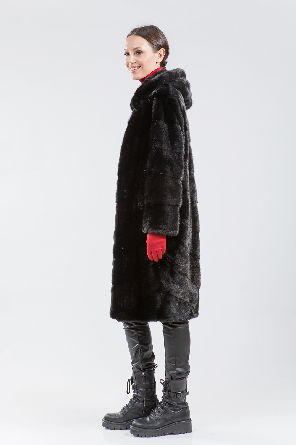 Полупальто из меха норки с капюшоном. Крой изделия диагональная выкладка пластин. Модель оснащена регулирующими утяжками на рукавах, по низу и в зоне талии. Рукава модели трансформируются в более укороченные. Длина изделия 110 см. Практичность шубки неоспорима. Если хочется выглядеть престижно, по-королевски роскошно, то натуральная норковая шуба является идеальным вариантом!