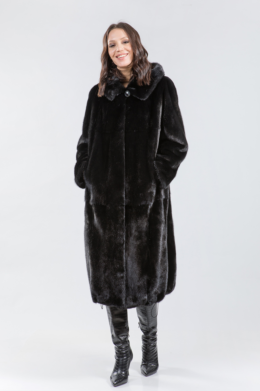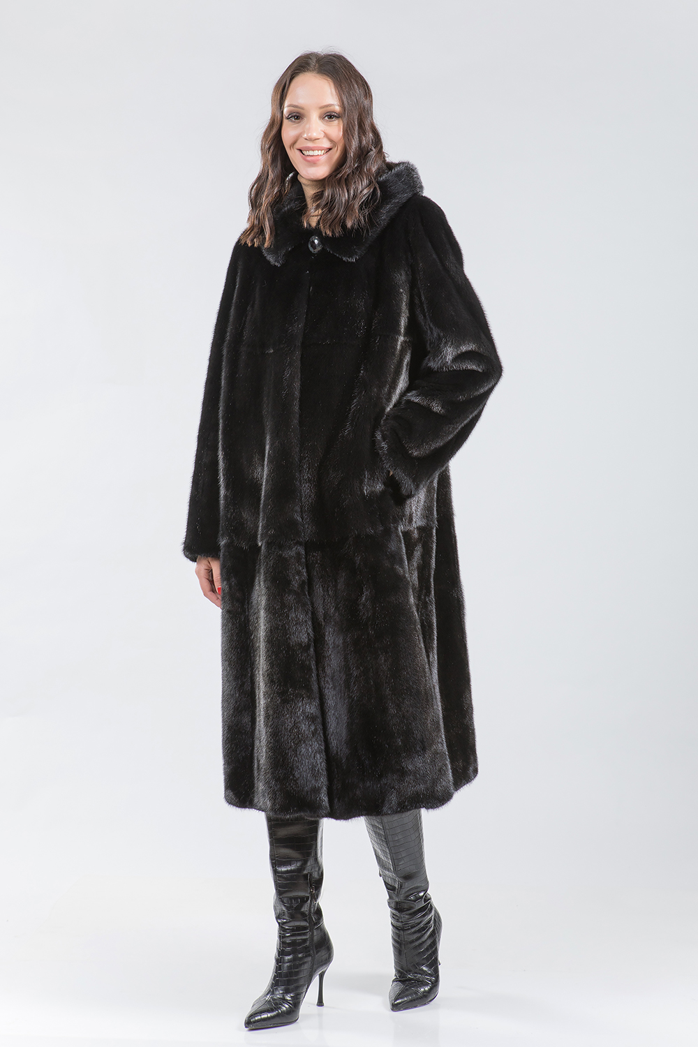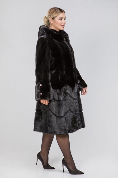 Полупальто из меха норки с капюшоном. Крой изделия пластины с добавлением роспуска. Модель оснащена регулирующими утяжками в зоне талии, на рукавах и по низу изделия. Длина шубки 120 см. Модель классического силуэта-универсальный вариант! Профессиональные стилисты считают такое меховое пальто безошибочным выбором и гарантируют элегантность!